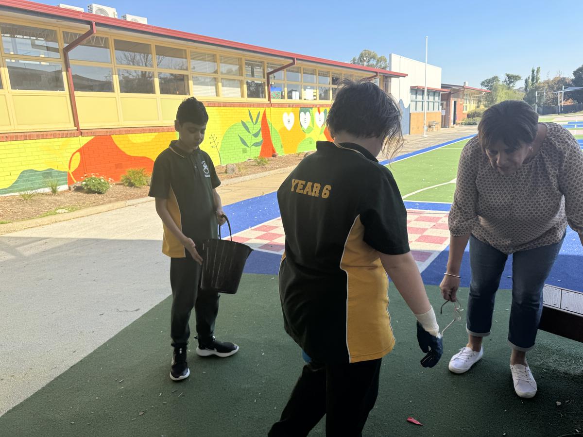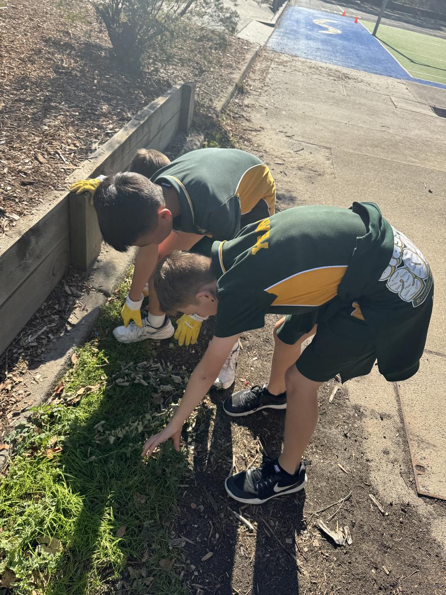 On the 13th of May, the Year 5/6 classes participated in some fun gardening and guided drawing activities. We picked weeds from our school gardens to help make our school look beautiful. A few students also ran around the school with a bin to collect rubbish, while two or three others picked up leaves and bark that had fallen from the trees. We were outside for about 40 minutes, which gave us plenty of time to finish the gardening. In total, we pulled out 17 kilograms of weeds, and the final result was amazing!