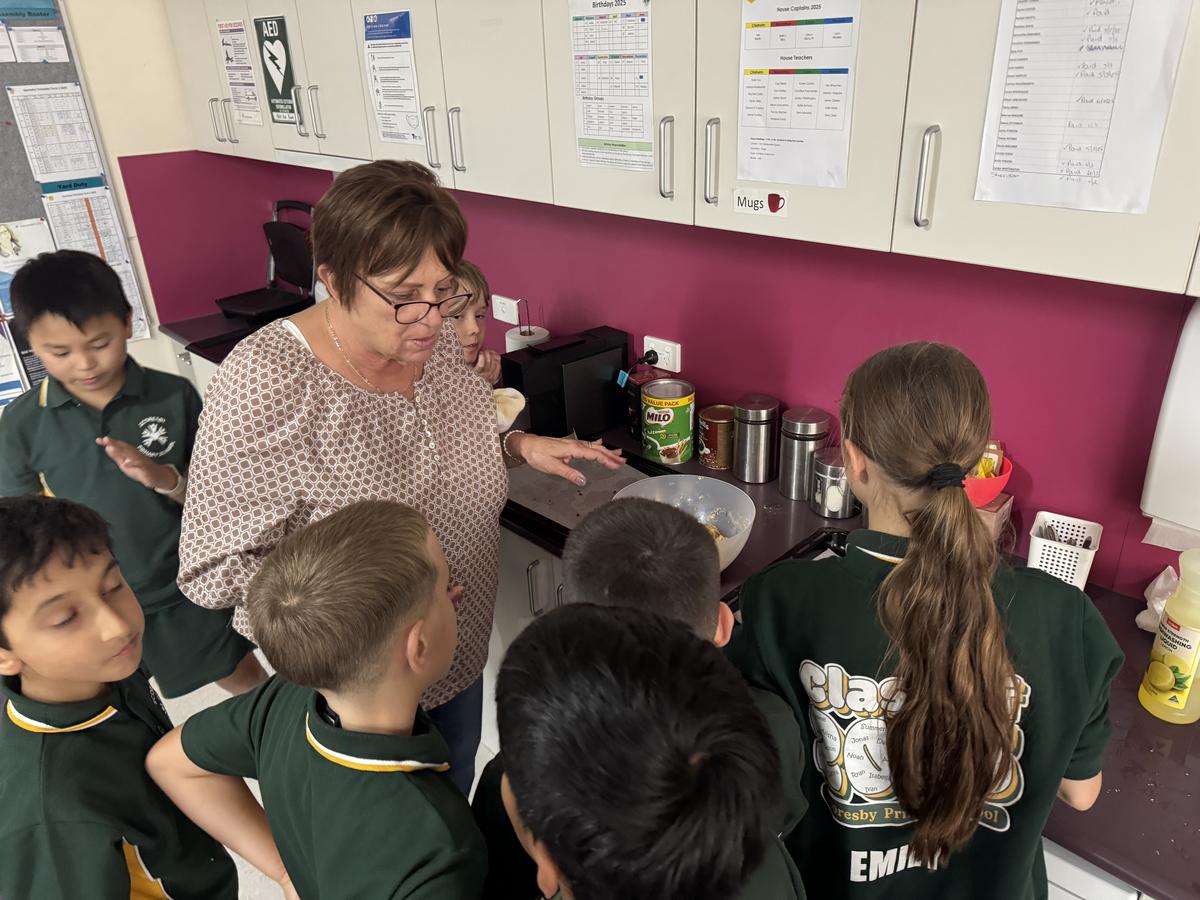On Wednesday the 7th of May, all the Level 5/6 students were invited to cook with Julie. The class split into two groups, then went to their table of choice. One group had the opportunity to ice biscuits and decorate them with lollies. Students decorated two biscuits - one for our mums and one for ourselves. The second group had the chance to bake Anzac biscuits, which involved making the mixture and rolling the dough. After Group 1 finished icing and decorating the biscuits, the groups switched tasks so everyone had the opportunity to do both activities. Once both groups had finished, classes returned to their rooms and waited for the Anzac biscuits to be ready and cool down. At the end of the day, students had the chance to enjoy their biscuits.