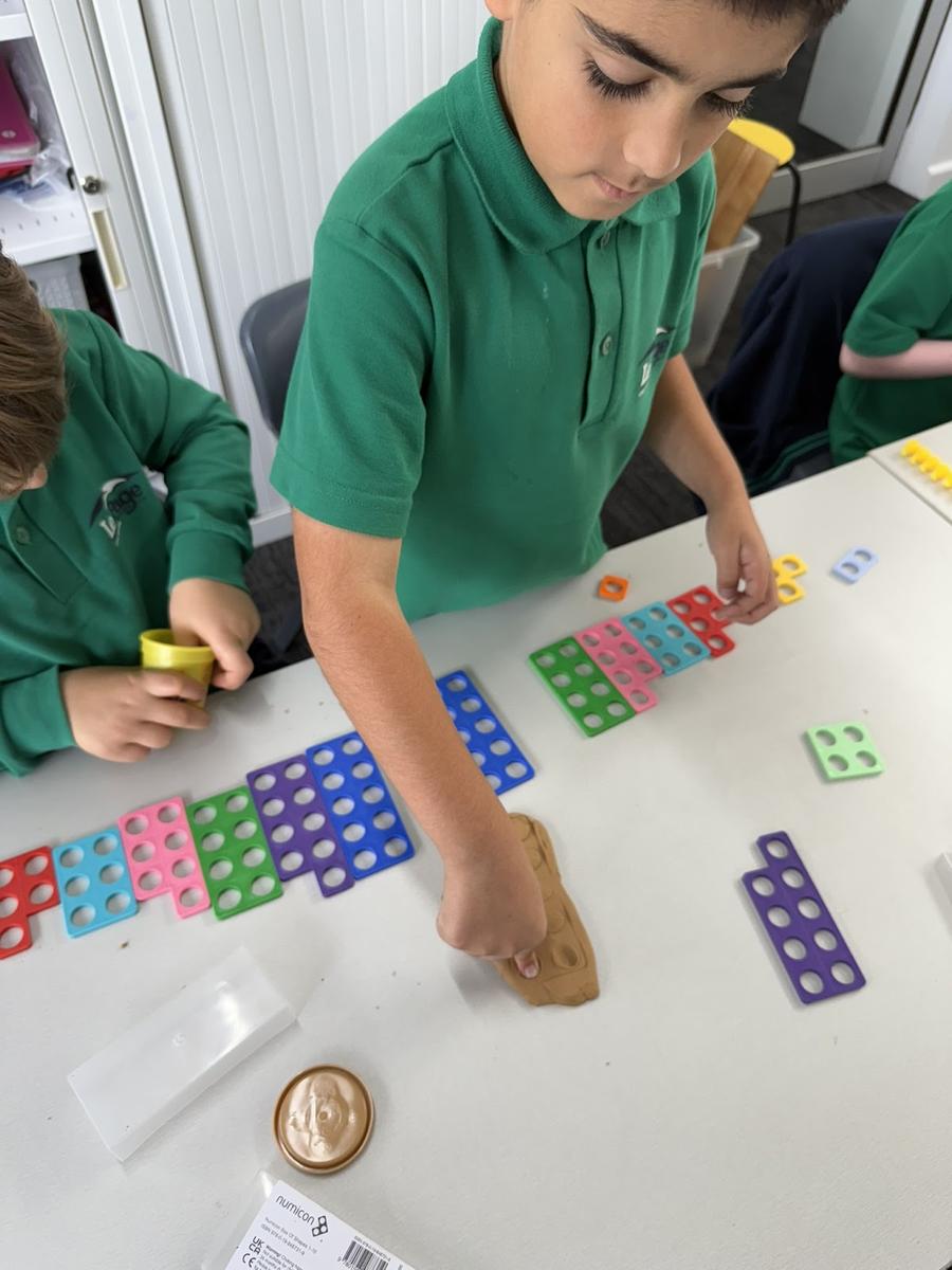 Students used Numicon and Playdough to solve simple subtraction equations.
