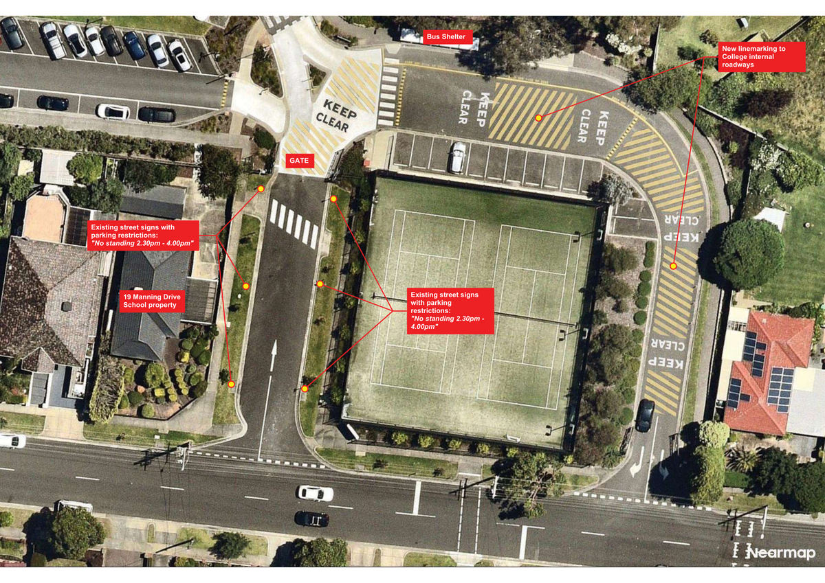 - Please note that the driveway into the school from Manning Drive is a No Standing Zone 2.30pm to 4pm and no standing is permitted. You could be fined by the local Council.