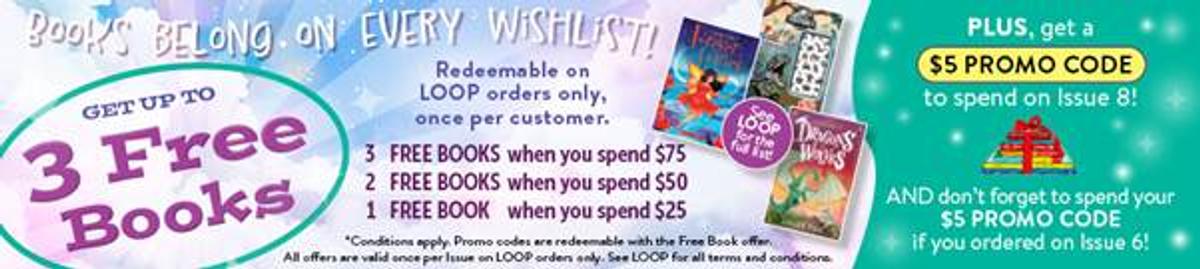 3 FREE BOOKS plus a $5 PROMO CODE for issue 8, details on the back page.