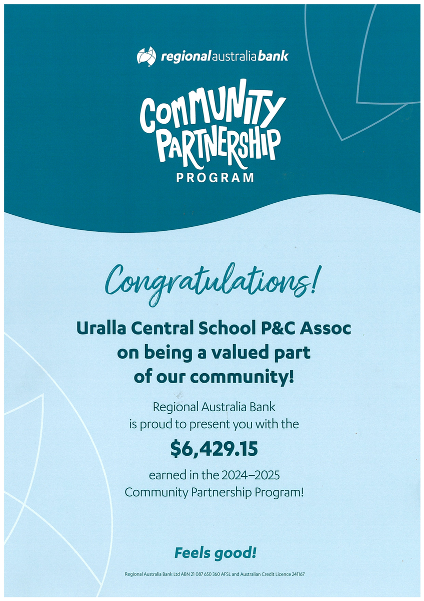 The Uralla Central School P&C meets in the 4th and 8th week of each term.