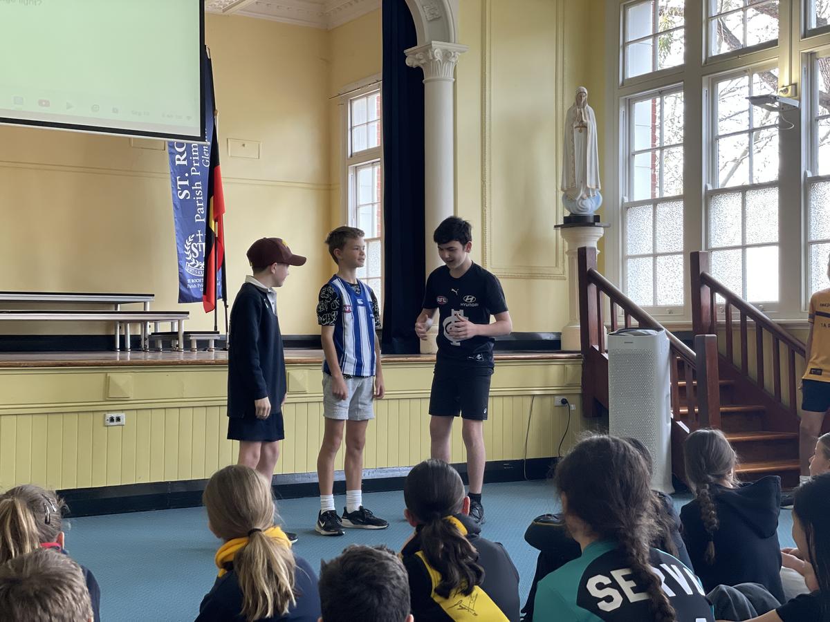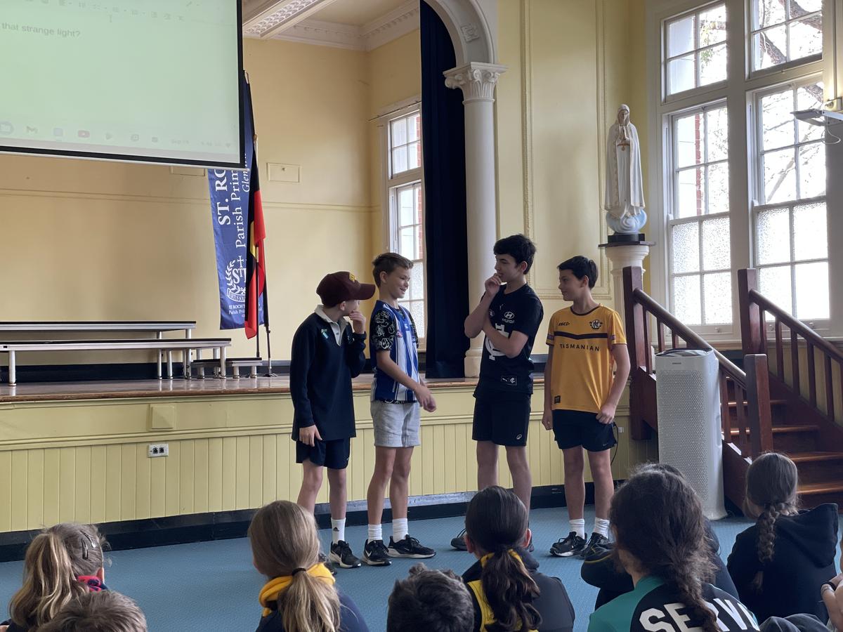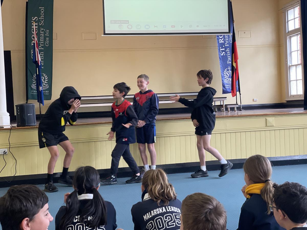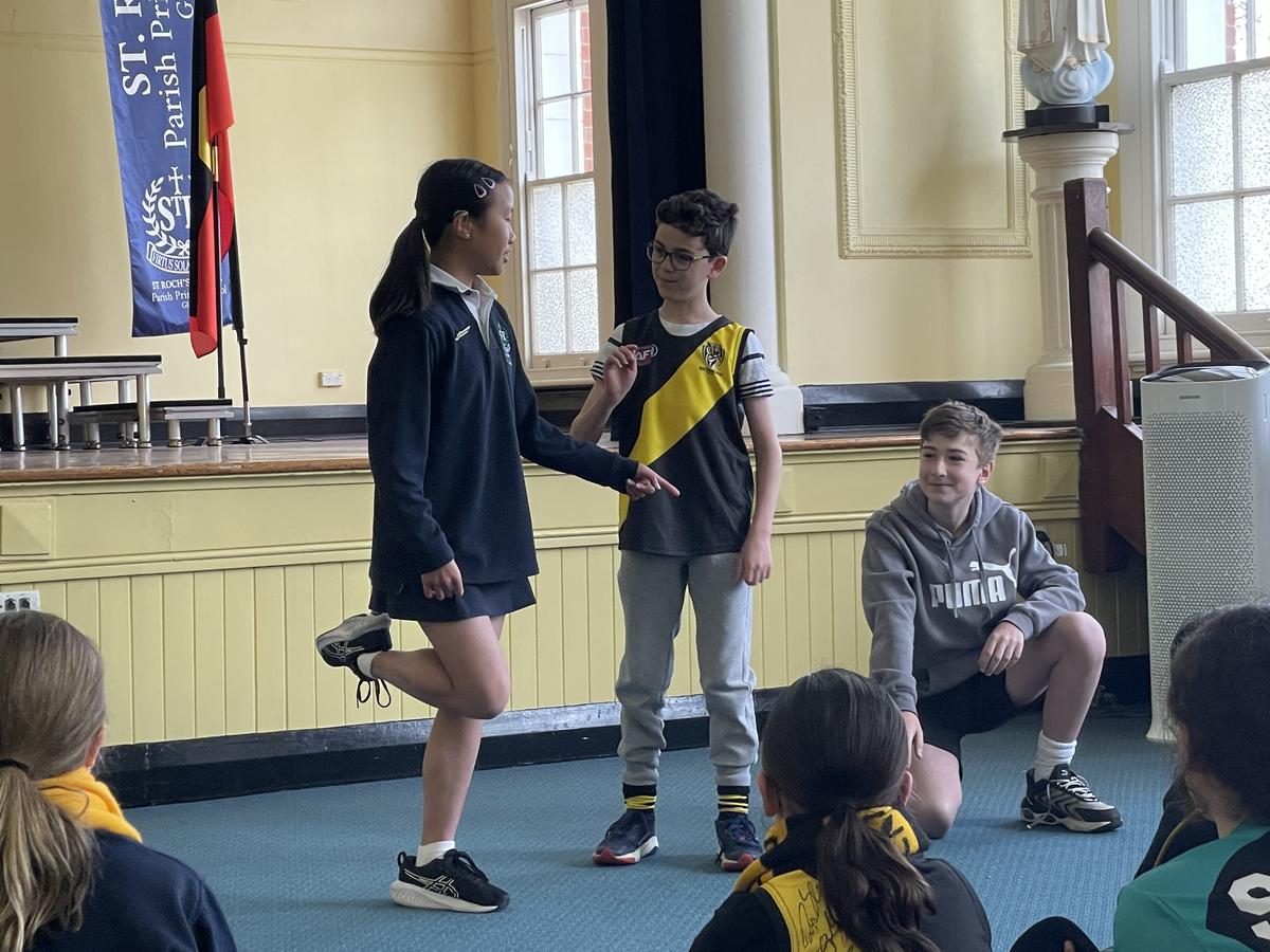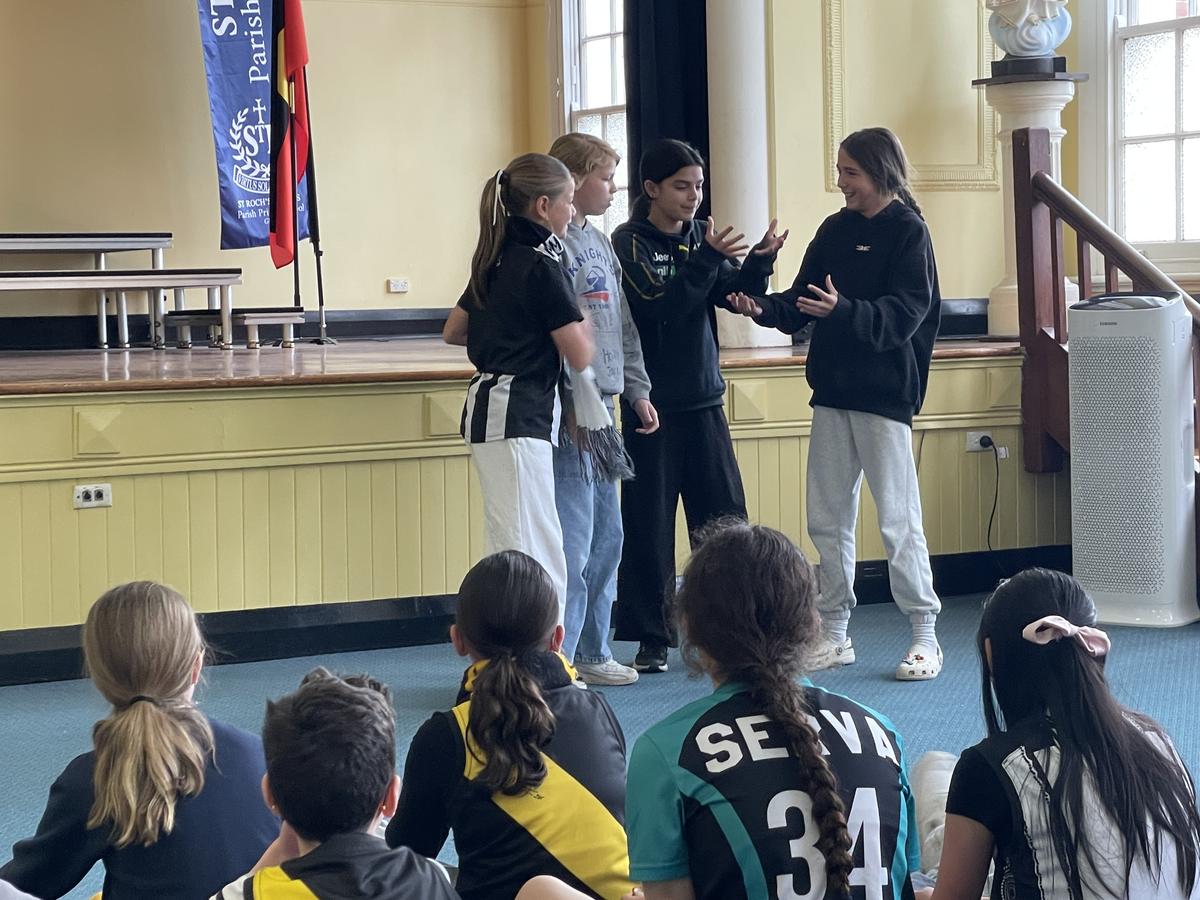 On the final morning of Term 4 our Year 5 & 6 students entertained the whole school with their clever improvisation skills, performing in small groups. They had us all laughing with their humour and acting skills. Thanks to Mrs O'Gorman for organising this great event.