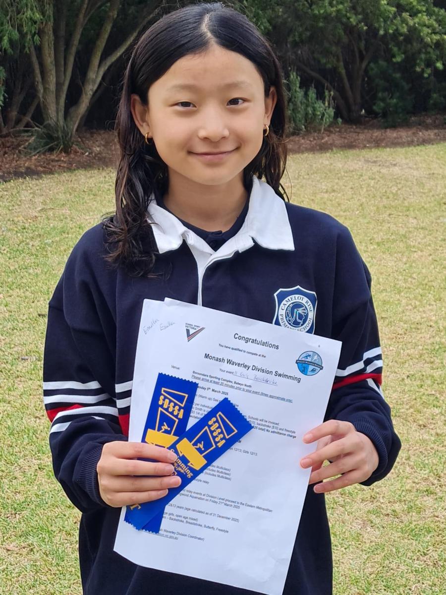 We are proud to share that Emilia (6J) has been selected to represent Team Victoria in the School Sport Victoria (SSV) Swimming Team at the upcoming School Sport Australia (SSA) Aquatic Games.