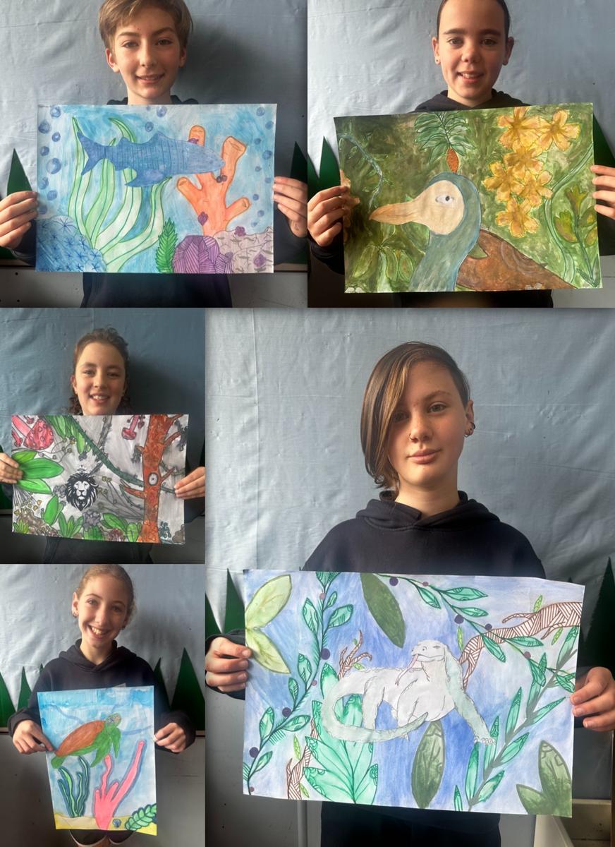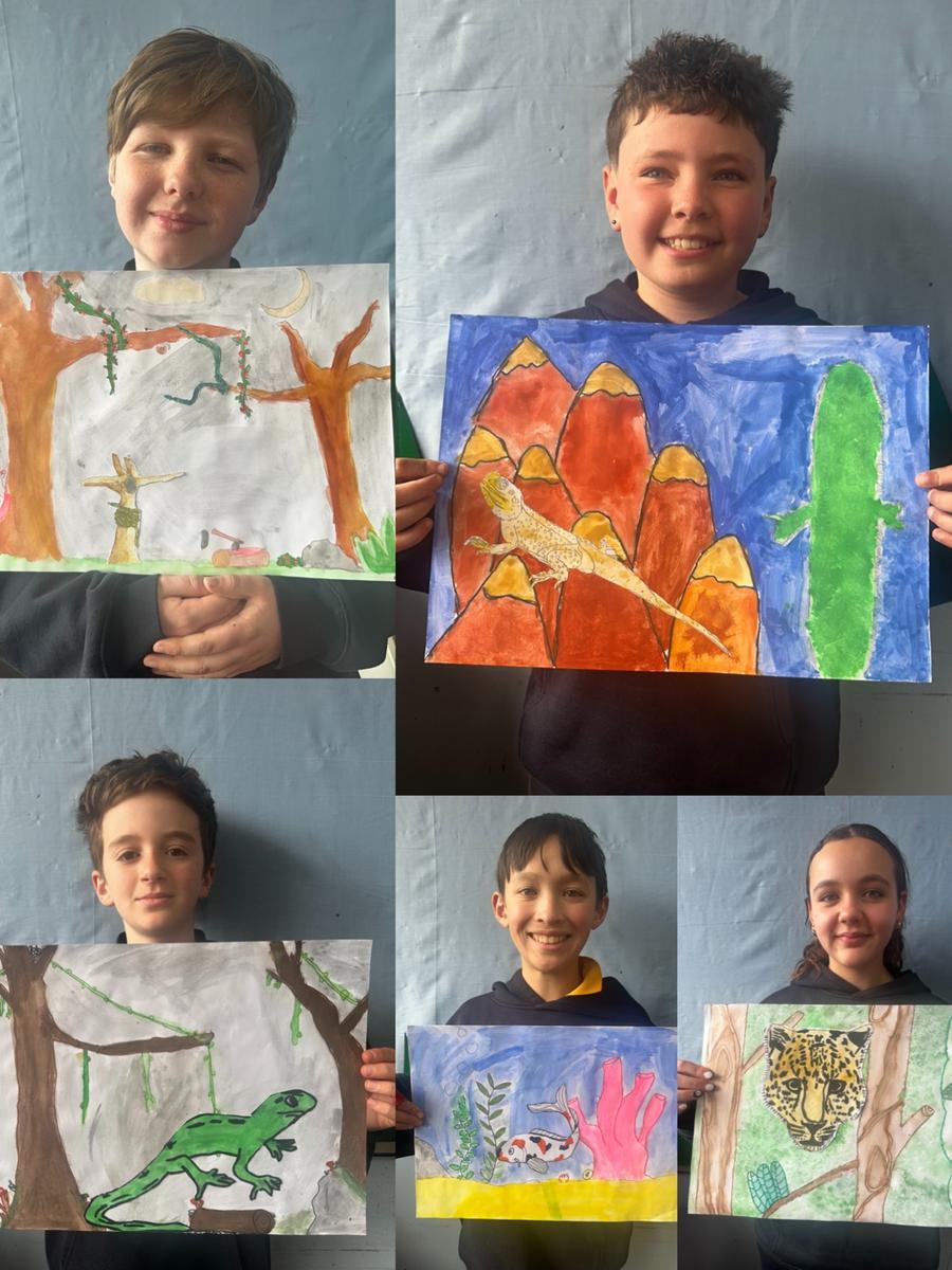 In the Art Room, students have been finishing and beginning a variety of projects that showcase both imagination and skill. We have, a clutch of chickens forming and sunflowers are coming into full bloom, while our hallways proudly display an array of feathered, finned, scaled, and ferocious animals created throughout the term. Some of these works may also make their way home in your child’s school bag this week or early next term. Please take the opportunity to celebrate their creativity by asking about their imaginative processes.