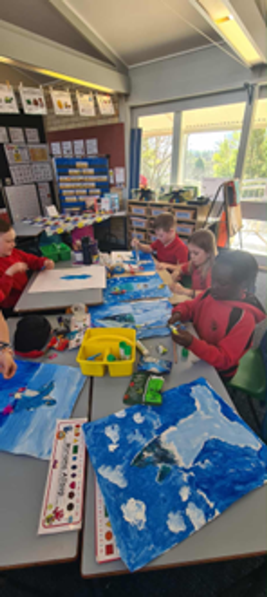 Alongside our performance preparations, we have also been continuing our Sustainability unit. Students created some beautiful whale artworks inspired by one of the stories we have been studying in class called The Mess We Made. These artworks sparked thoughtful conversations about looking after our oceans and protecting sea life. Our seeds are also slowly growing, and we are hoping to add them to the aeroponics tower this week now that the weather has warmed up a little!