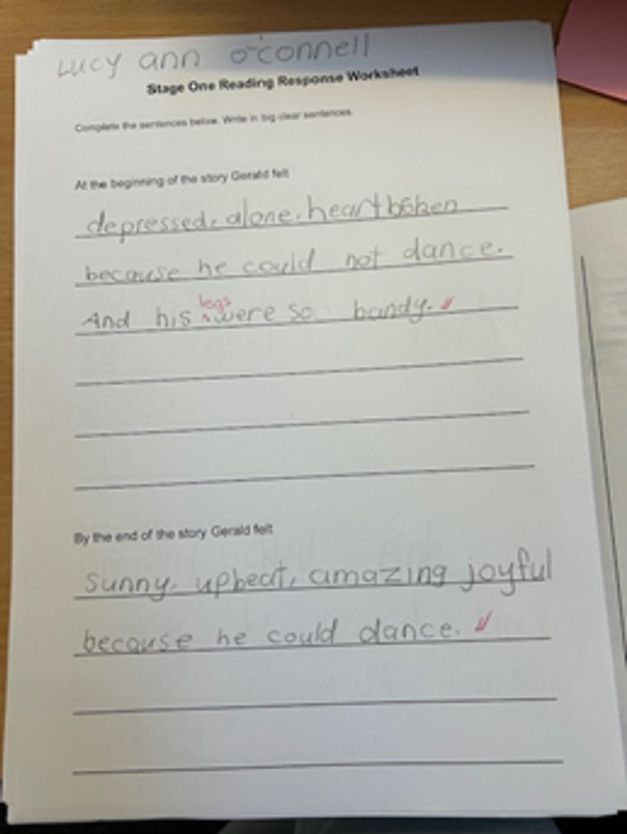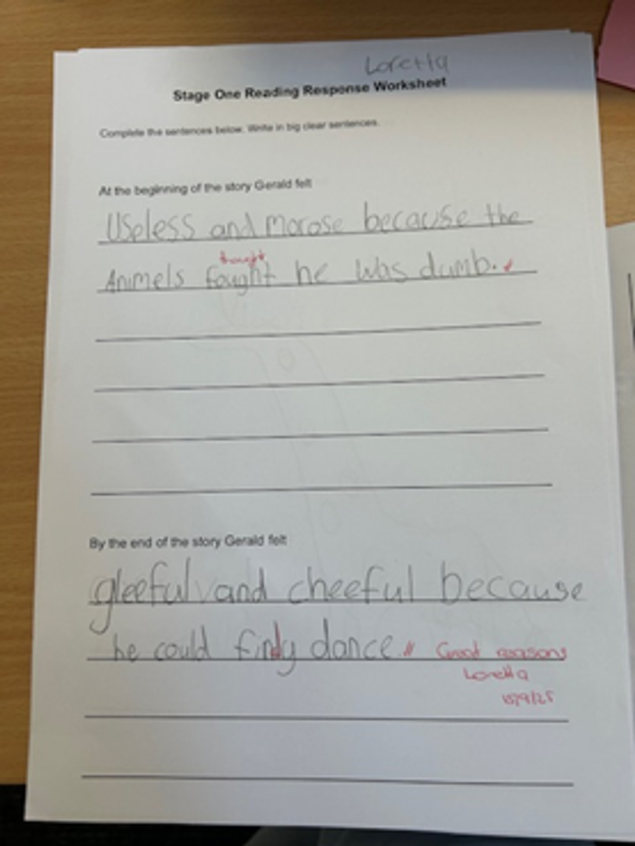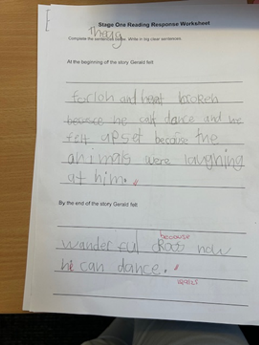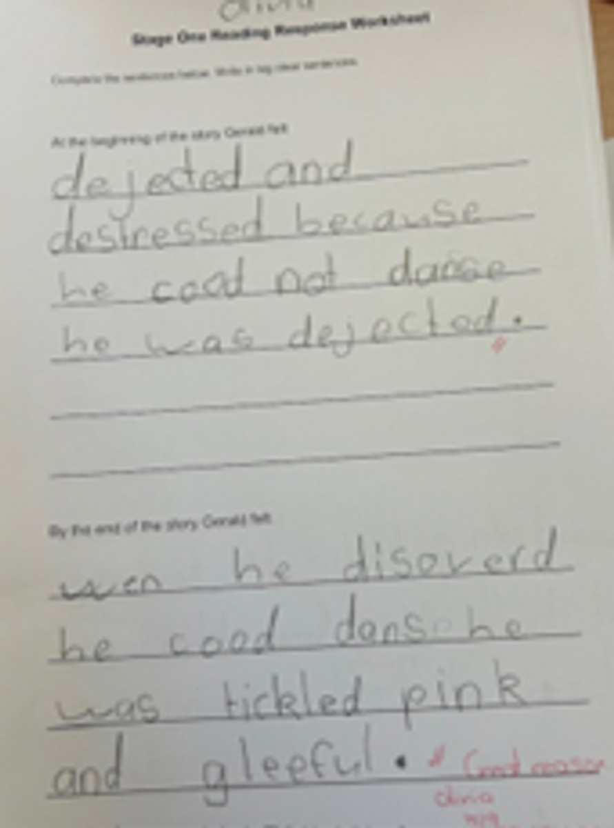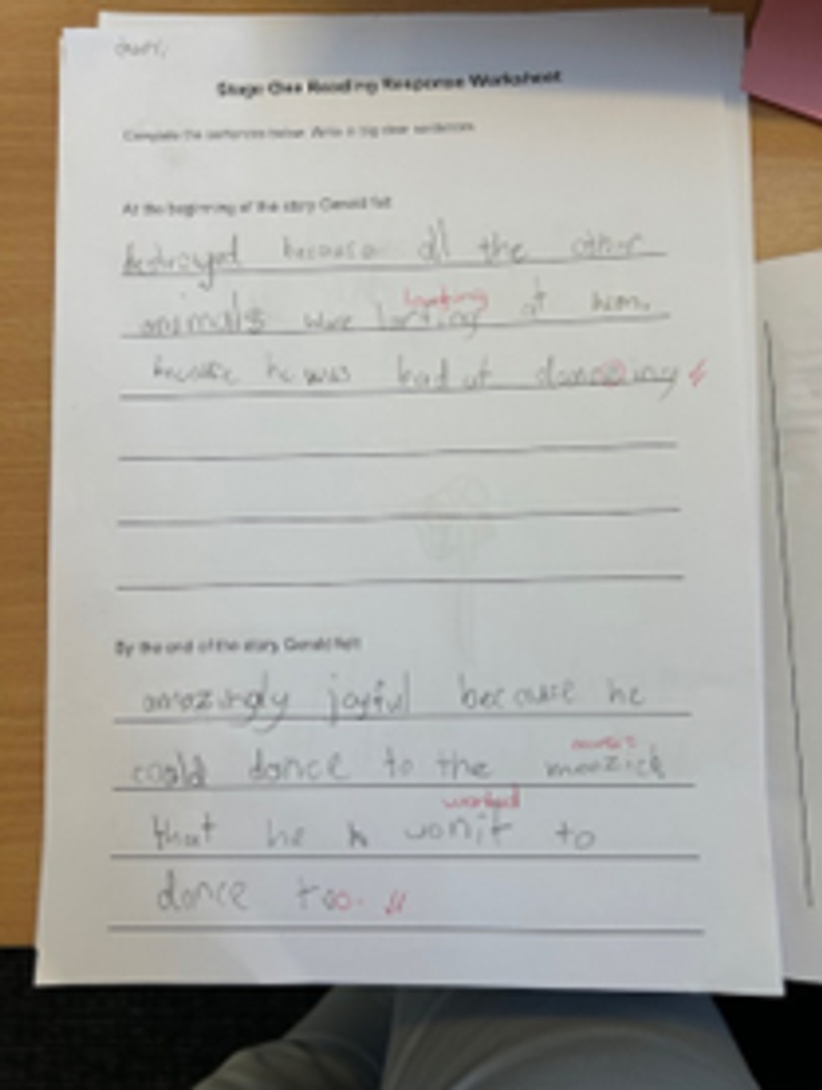 In English, we have been reading Giraffes Can’t Dance by Giles Andreae. Our focus has been on using rich Tier 2 vocabulary to describe how Gerald felt and explain why he felt that way. Students enjoyed exploring different words to build stronger sentences and deepen their understanding of the story. These are their rough copies, and we are very excited to see their wonderful work when it is published!