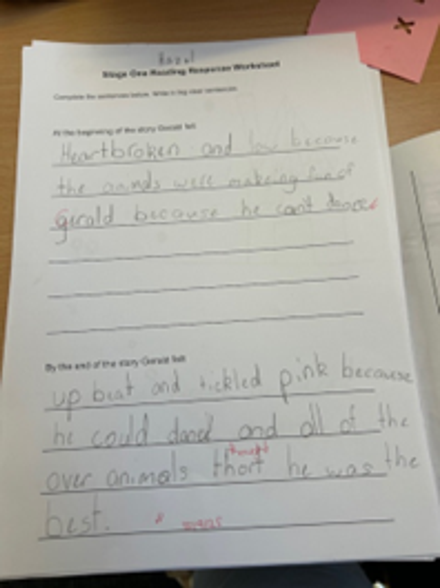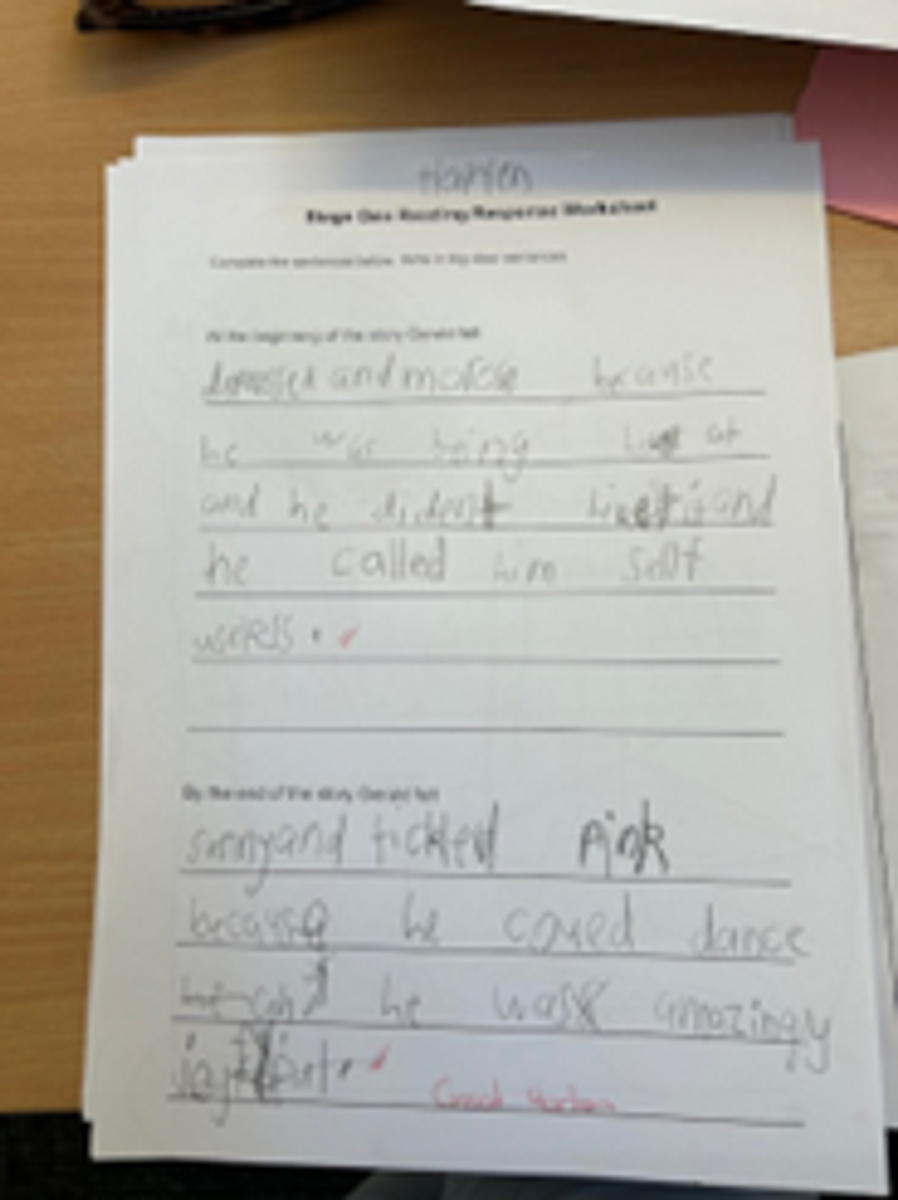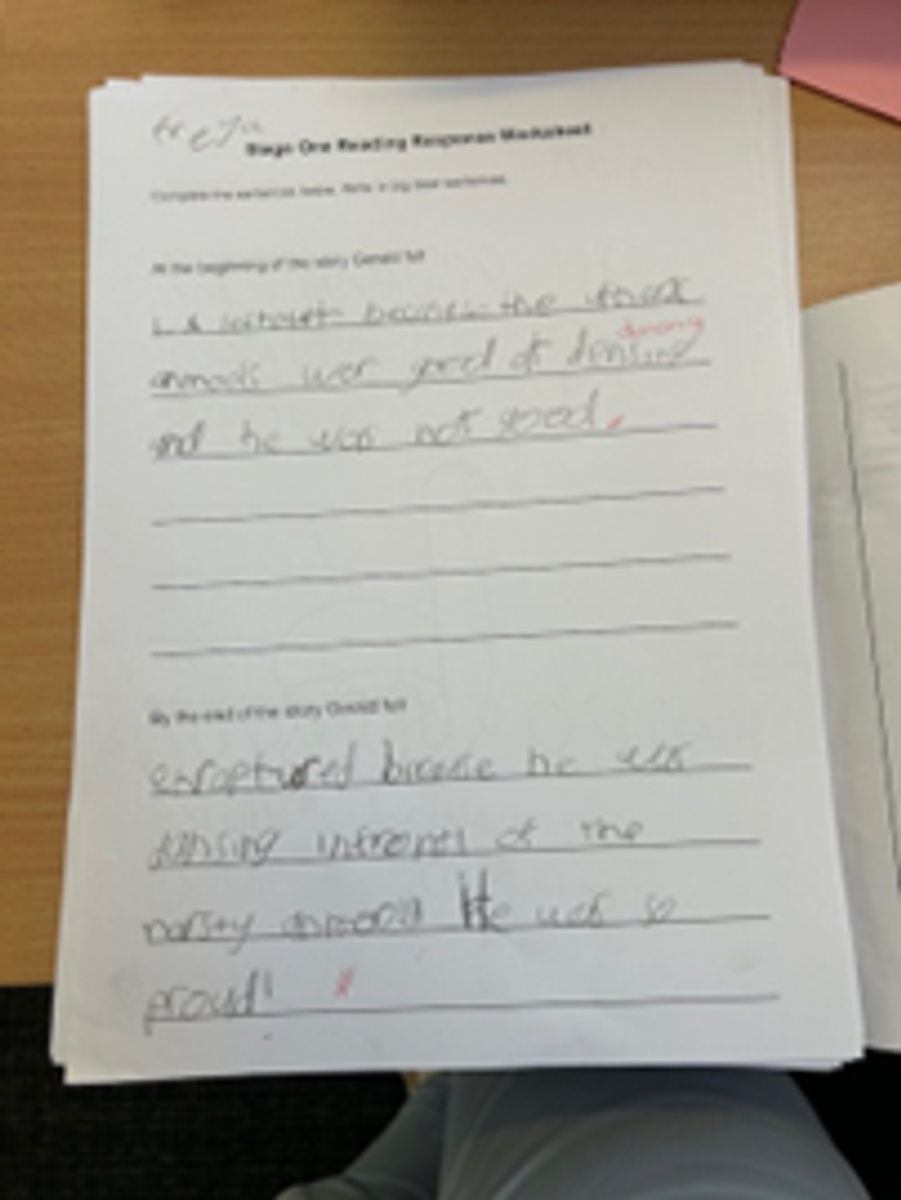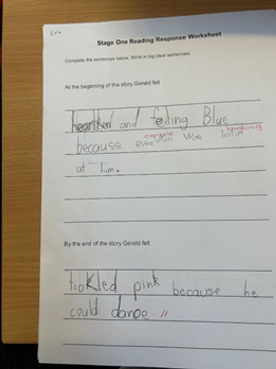 In English, we have been reading Giraffes Can’t Dance by Giles Andreae. Our focus has been on using rich Tier 2 vocabulary to describe how Gerald felt and explain why he felt that way. Students enjoyed exploring different words to build stronger sentences and deepen their understanding of the story. These are their rough copies, and we are very excited to see their wonderful work when it is published!