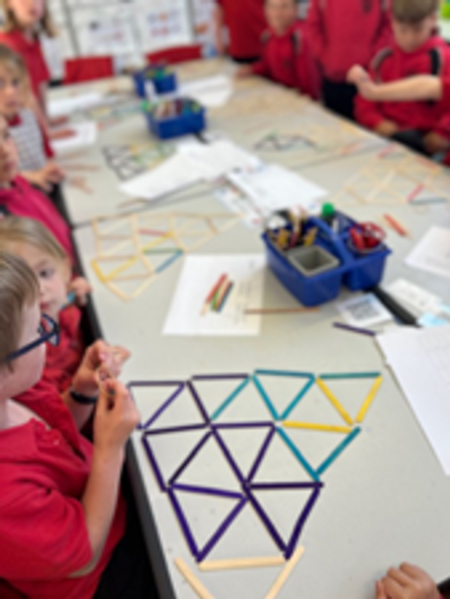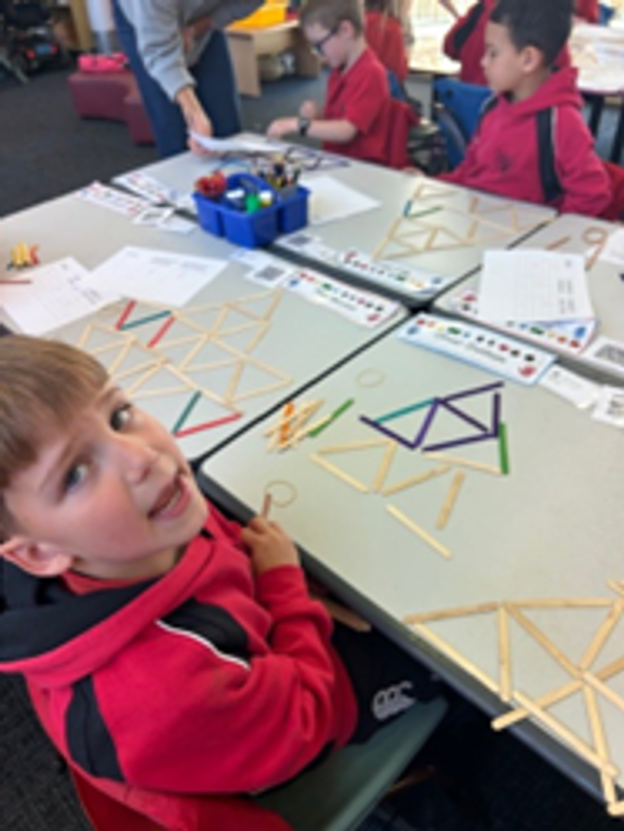 In Maths, we have been exploring patterns. The students have enjoyed creating patterns with colours, shapes, numbers, and even through body percussion! It has been lots of fun watching them discover how patterns exist all around us.