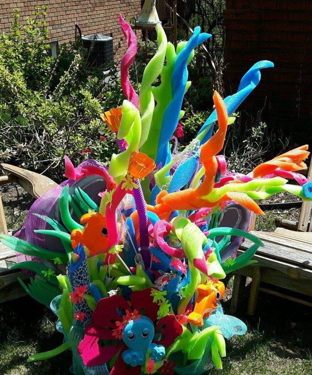 This year we are creating an underwater habitat using re-cycled, re-purposed and re-used materials. Our scarecrows will be dressed to suit their new habitat – we are making them into mermaids. We will try to use only re-cycled materials like plastics (bottles, bags, tablecloths, etc), pool noodles, scrap fabric, tin foil and other stuff found in hard rubbish. Here are some inspirational photos to help paint the picture…