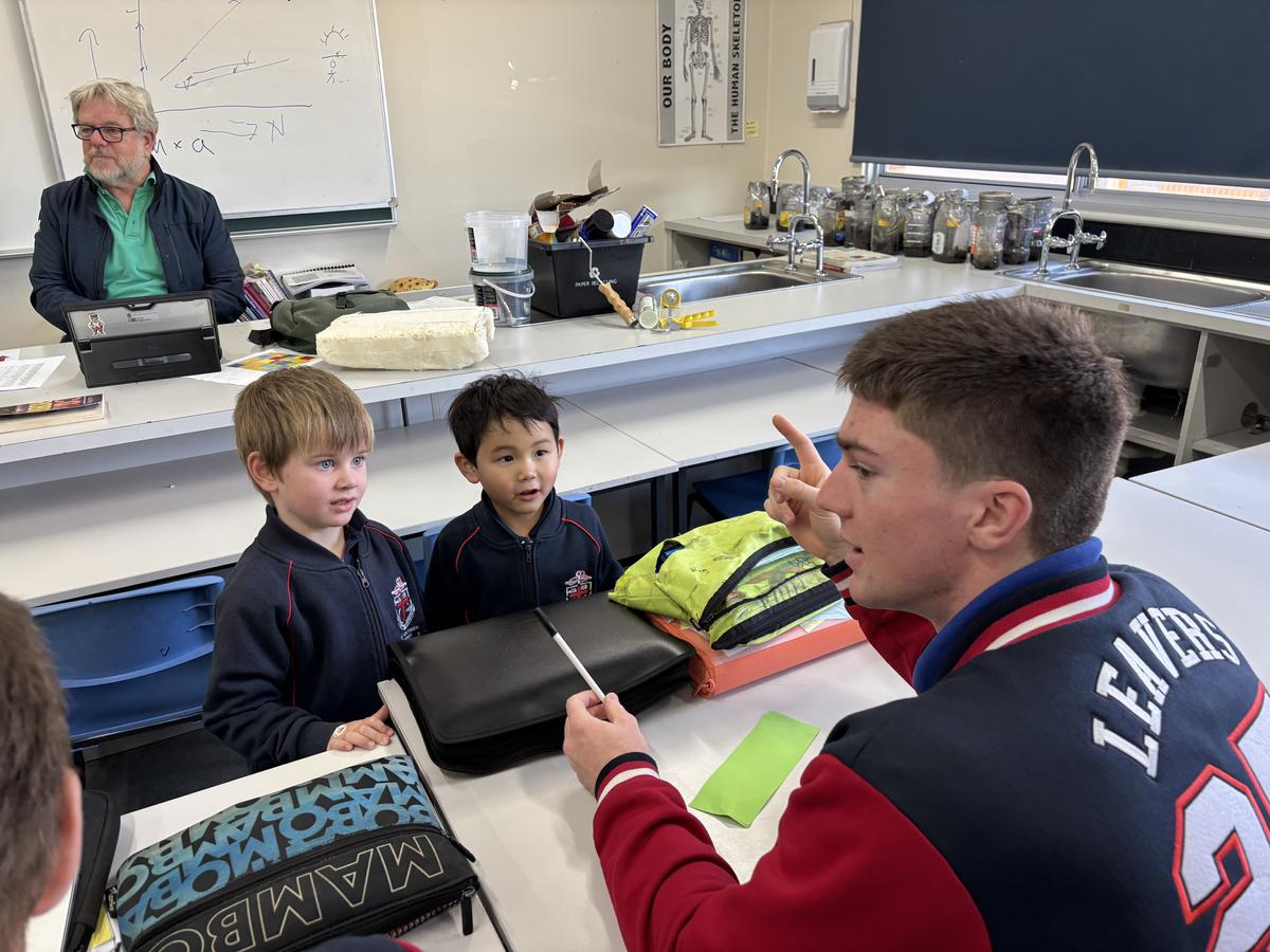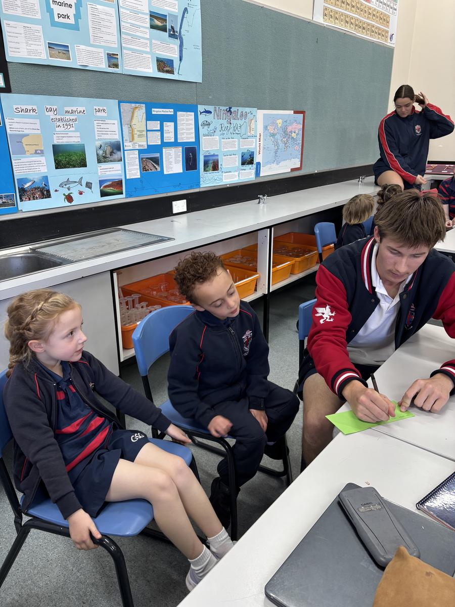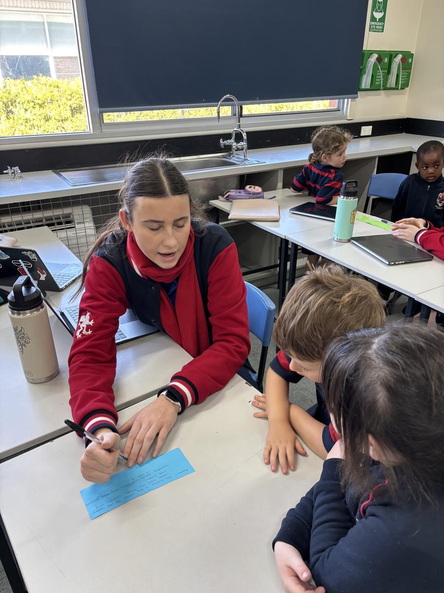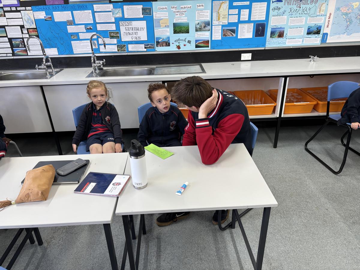 Our Kindergarten students are currently in the exciting finding out phase of our inquiry and last week, their curiosity led us on a very special adventure: a walk into the Secondary School to seek out some knowledgeable Year Twelve students. We visited Mr Gugenheim’s Marine Science class, where the older students warmly welcomed us into their space and happily shared their expertise. The Kindergarten class came prepared with lots of thoughtful questions, especially about the red water at the Wild Space, which has sparked so much interest during our outdoor learning. The Year Twelve students took the time to explain some possible scientific reasons behind the colour and the Kindergarten class listened intently, eager to make connections to their own observations. This experience has deepened our students' sense of wonder and encouraged them to keep exploring, questioning and learning more about the natural world around them.