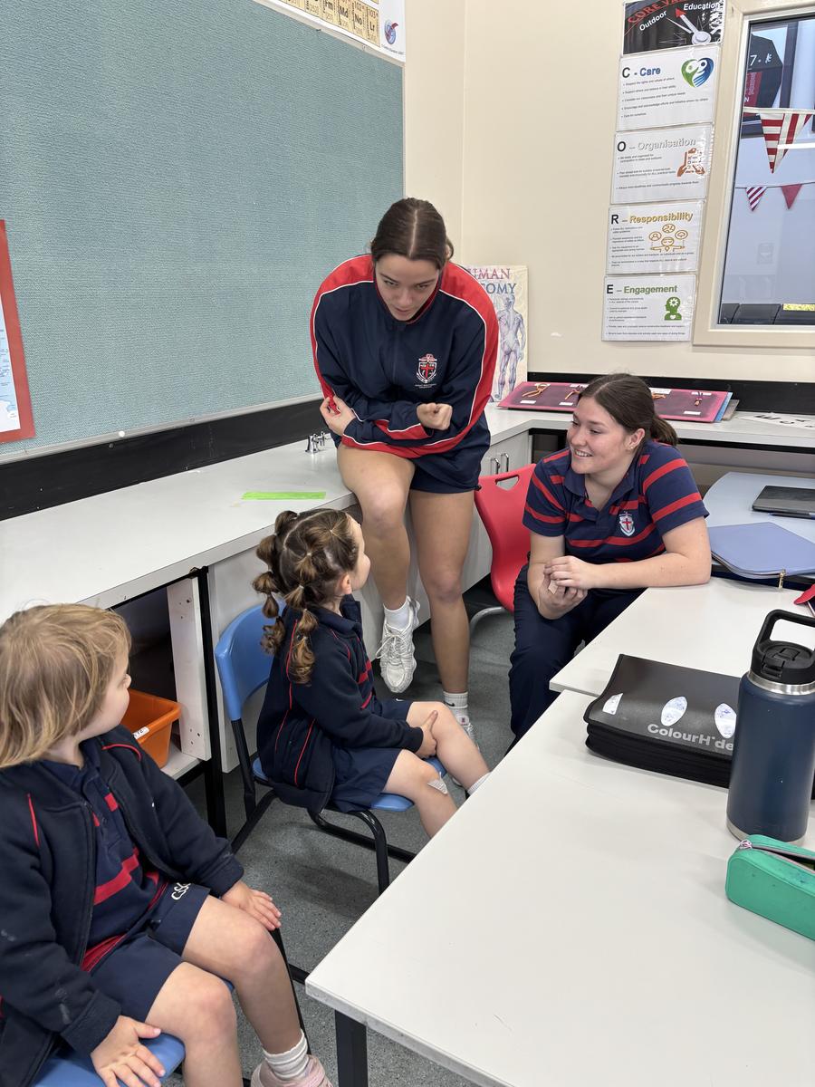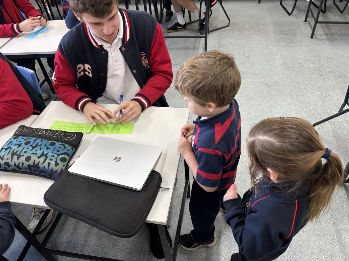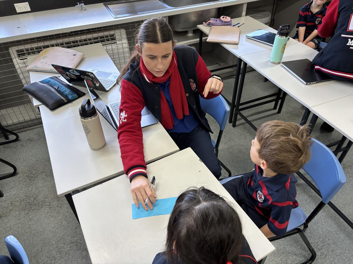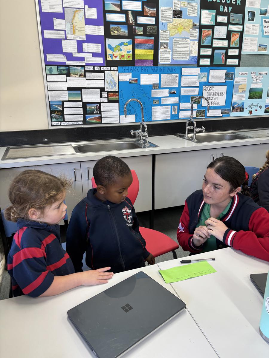 Our Kindergarten students are currently in the exciting finding out phase of our inquiry and last week, their curiosity led us on a very special adventure: a walk into the Secondary School to seek out some knowledgeable Year Twelve students. We visited Mr Gugenheim’s Marine Science class, where the older students warmly welcomed us into their space and happily shared their expertise. The Kindergarten class came prepared with lots of thoughtful questions, especially about the red water at the Wild Space, which has sparked so much interest during our outdoor learning. The Year Twelve students took the time to explain some possible scientific reasons behind the colour and the Kindergarten class listened intently, eager to make connections to their own observations. This experience has deepened our students' sense of wonder and encouraged them to keep exploring, questioning and learning more about the natural world around them.