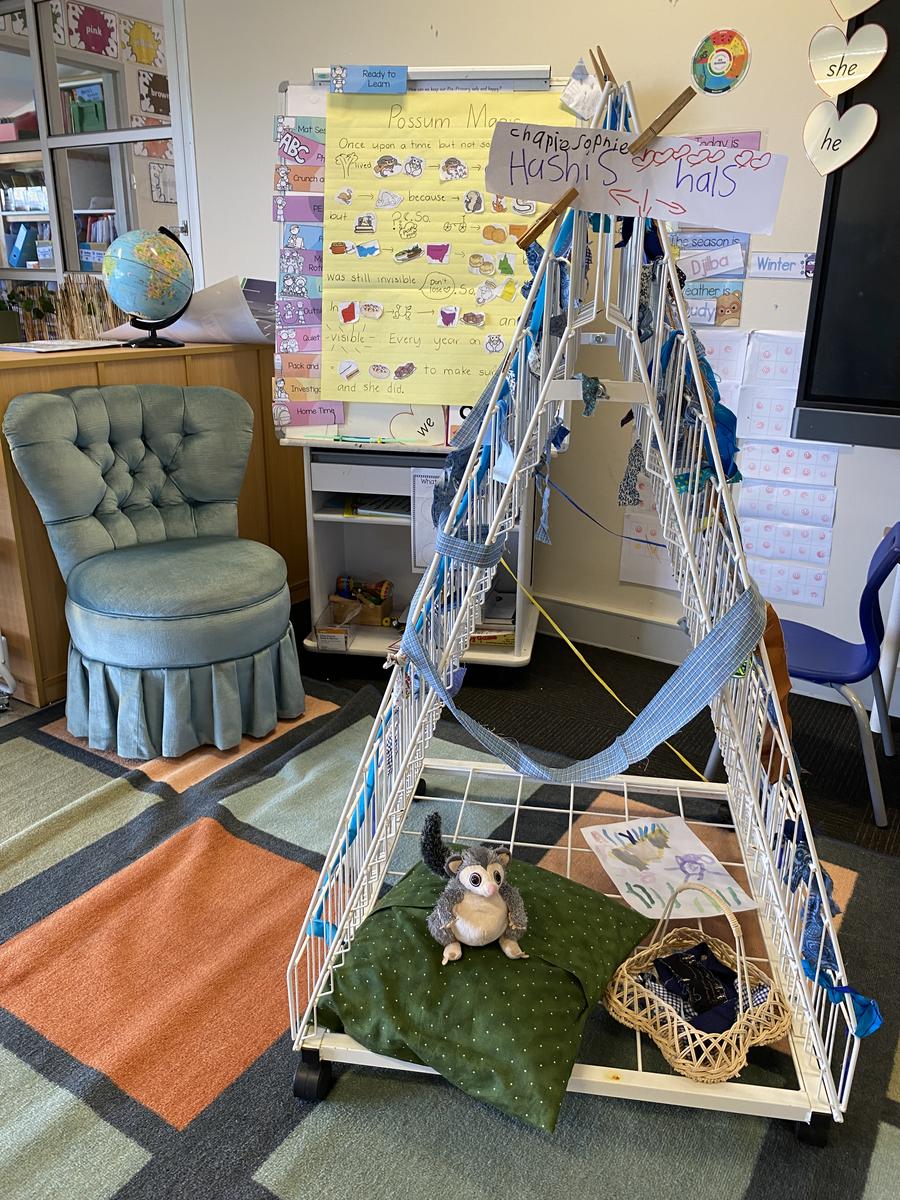 In Pre-Primary we have been reading the story Possum Magic as part of our Talk for Writing programme. In the story, Hush the possum is made invisible to keep her safe from snakes but she decides that she would like to be seen again. So, Hush and Grandma Poss leave the bush, where they have always been, to find the food that will make Hush seen. We have created a story map to help us retell the story and sequenced the people foods that Hush eats to make her visible again. We also created our own possums while identifying our favourite parts of the story. We have even created a house for Hush while practising our fine-motor weaving skills. We are loving Possum Magic!