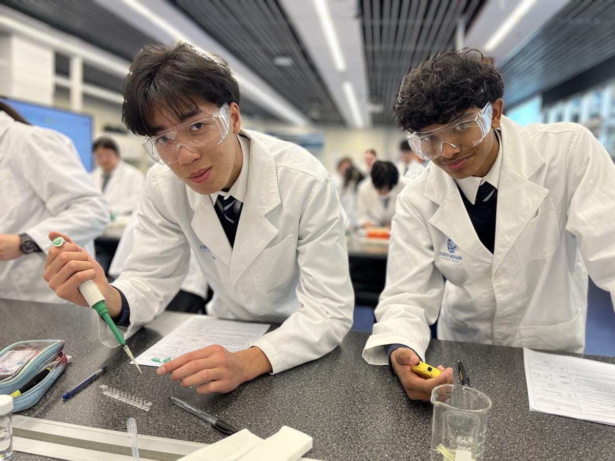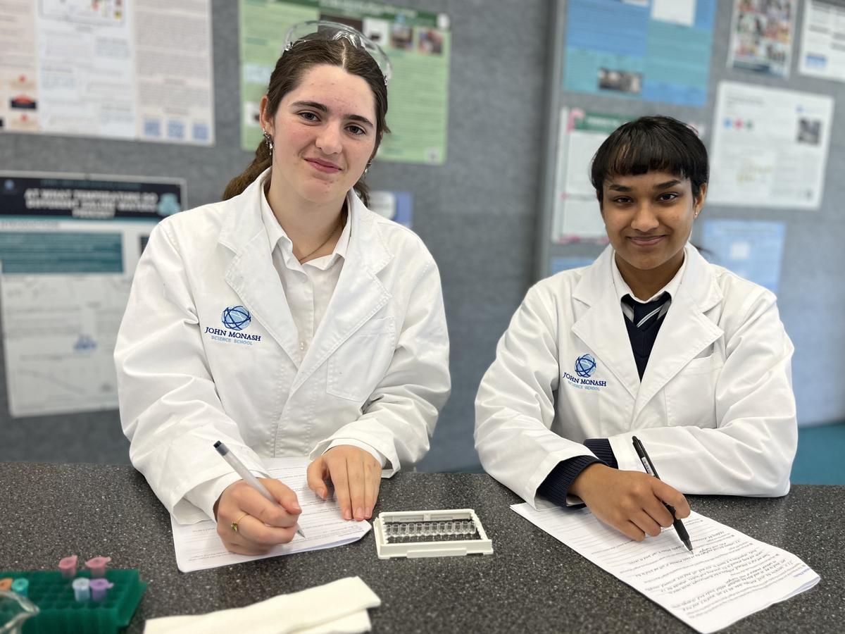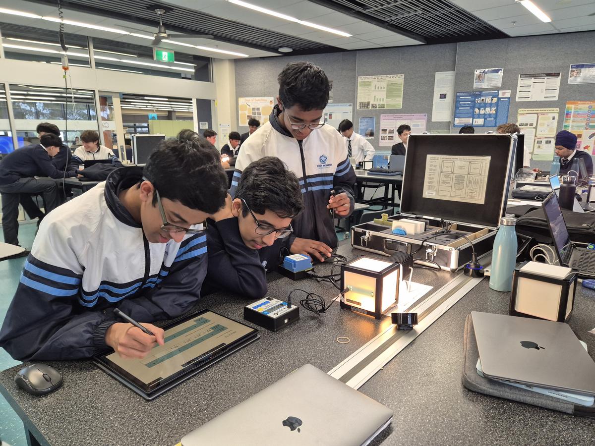 Students in the new elective Tiny Village Design used the new sustainable housing kits to explore thermal properties of materials.