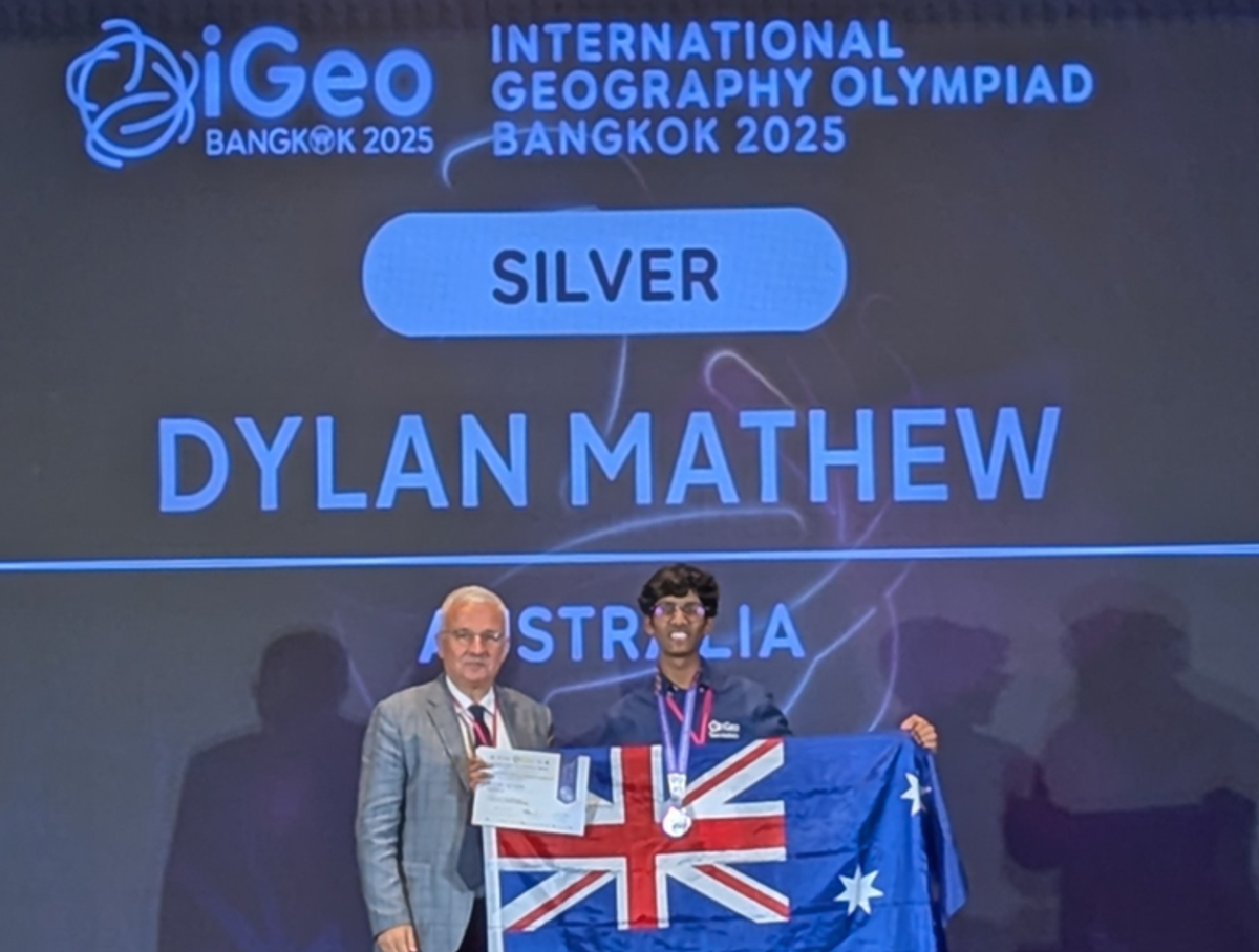 Dylan Mathew of Year 12 was a member of the Australian team in the International Geography Olympiad in Thailand recently where he won a silver medal (pictured below). Congrats Dylan!