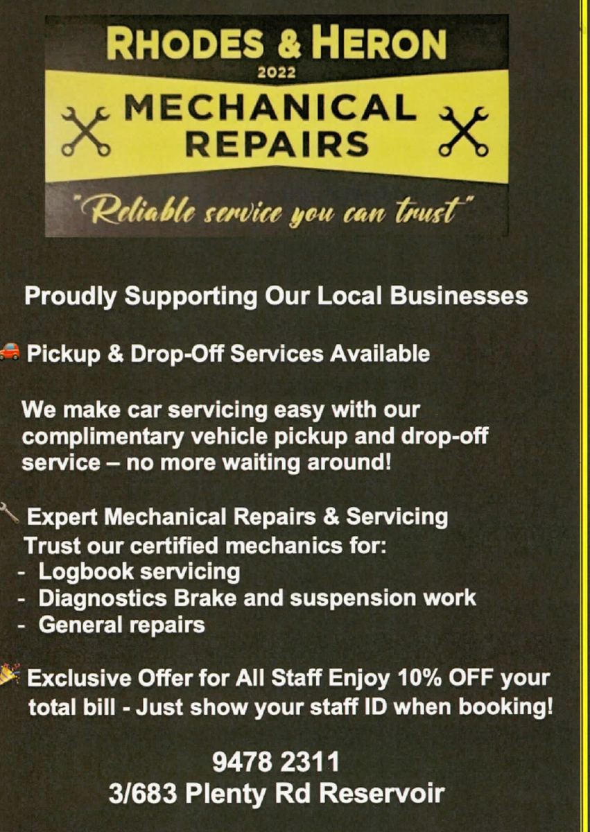 We’re reaching out from Rhodes and Heron; your local mechanical shop is committed to supporting our community. We’ve put together a special offer just for local Schools like yours.