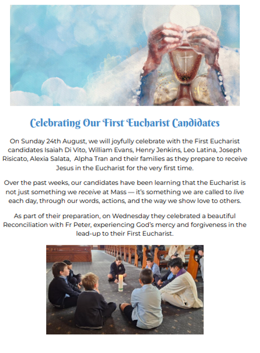 Today we celebrated the Feast of the Assumption, with a whole school Mass. This Feast Day is a major feast in the Catholic Church and a Holy Day of Obligation that honors the belief that the Virgin Mary was taken body and soul into Heaven at the end of her earthly life.
