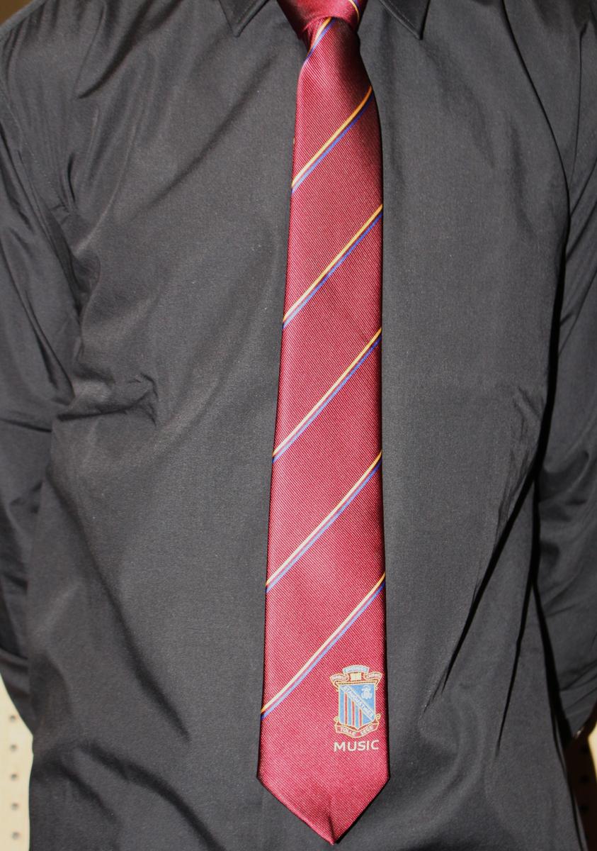 The Music Department has streamlined our performance uniforms. The fuss with the vests and bowties was creating excessive work for staff, so we’ve made each ensemble look the same. To do this, students will retain their performance blacks, but with the addition of a college music tie. This tie has been designed along similar lines to the current college ties used by staff and for sport. Ties can be purchased at the Saints Shop for $21 and will be required for performances at the Cairns Eisteddfod onwards. Thank you in advance for your support of this.
