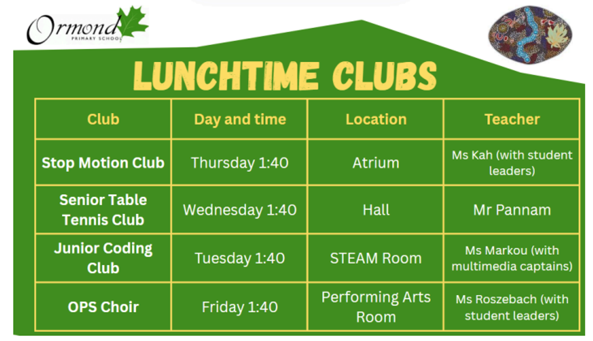 Lunchtime Clubs started this week @ OPS! A Big thank you to teachers for putting their hands up to run a club. It is also great to see some student leaders wanting to get involved in the running of the clubs too.