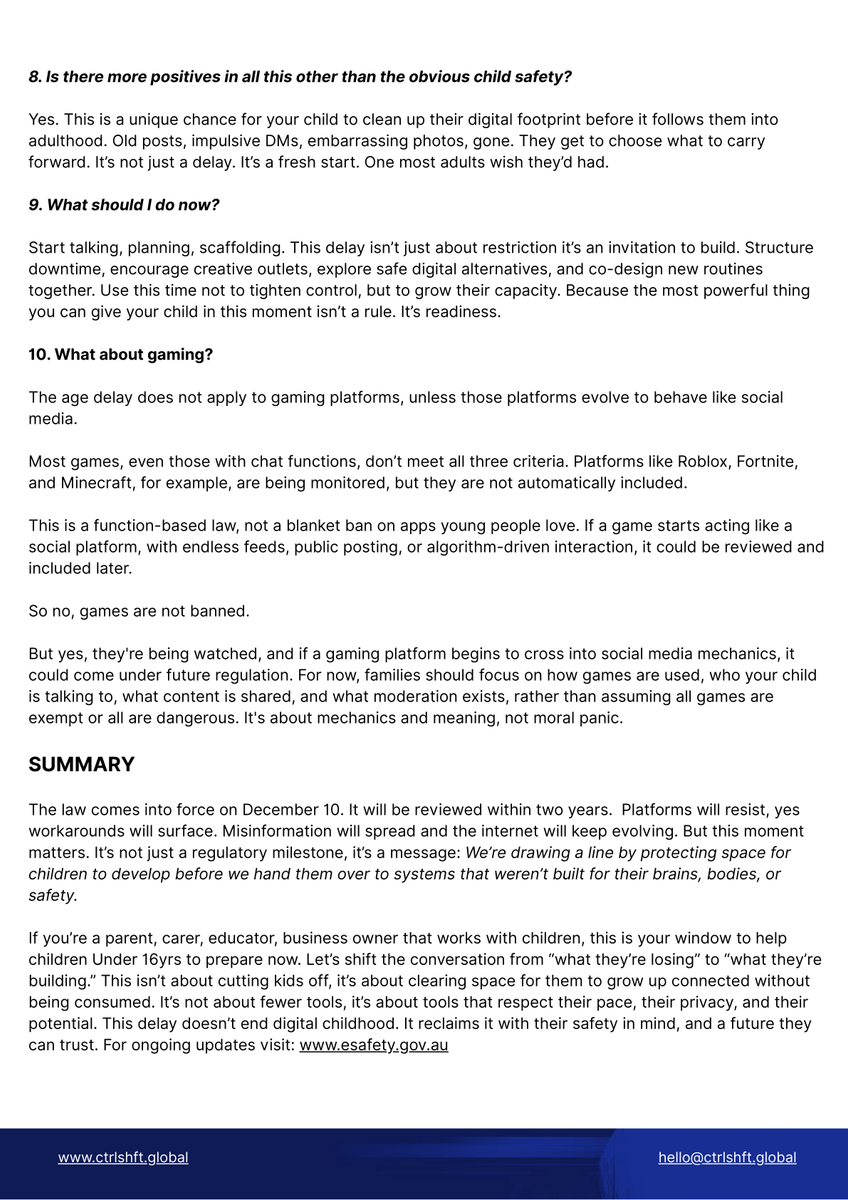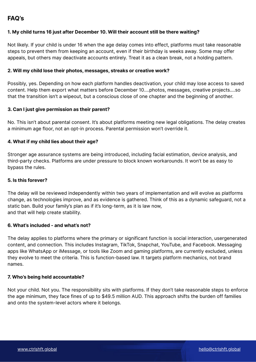 As a follow up from our earlier Parent Forum, we would like to provide some information on the upcoming legislation that will impact some of our students' social media use. The information comes from the lens of offering parent support delivered by Kirra Pendergast*, publisher of a support document titled, 'Parent and Carer’s Guide - The Australian 16+ Age Delay’.