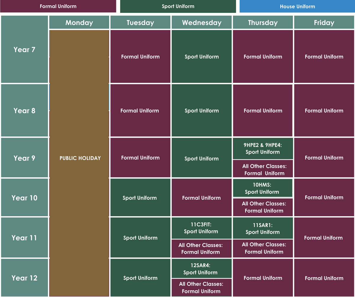 Please see below the Jewellery and Personal Grooming requirements for the commencement of Term 4, as observed in the Student Expectations document found on the College website.