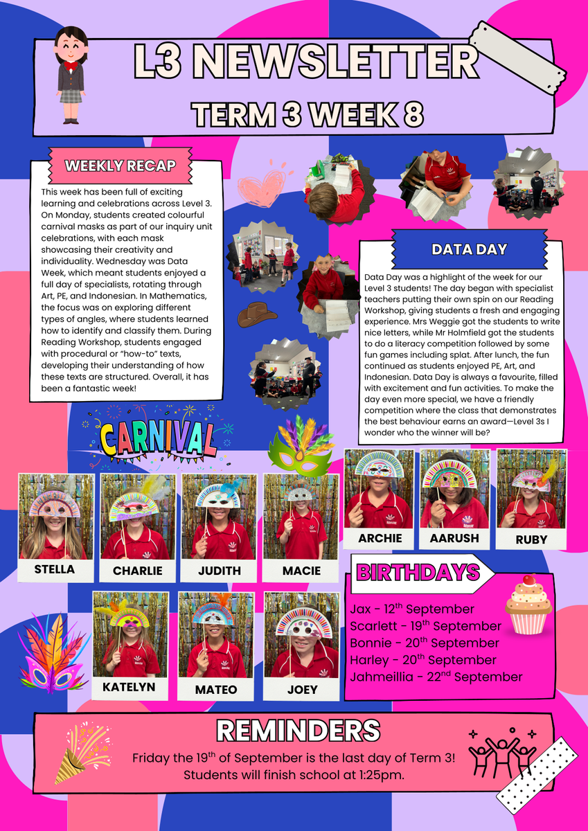 The bus will return to Echuca East for pick up on Wednesday 10th December at 2.30pm. If there is a 1/2 hour change either way to the arrival time, this will be communicated to families via the Sentral App.