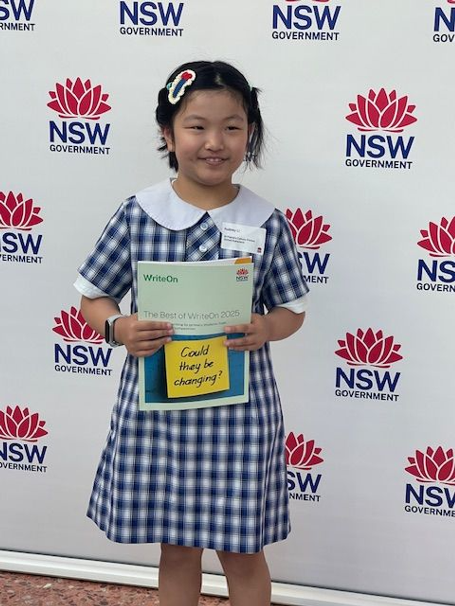 A huge congratulations to Aubrey L in Year 2 who was awarded a GOLD Award in the NSW WriteOn Competition. She was one of six Gold Award recipients in the Stage One category from 685 entries. She was also the only student from Stage One to be asked to share her Writing at the Awards ceremony that was held on Monday at the NSW State Library.