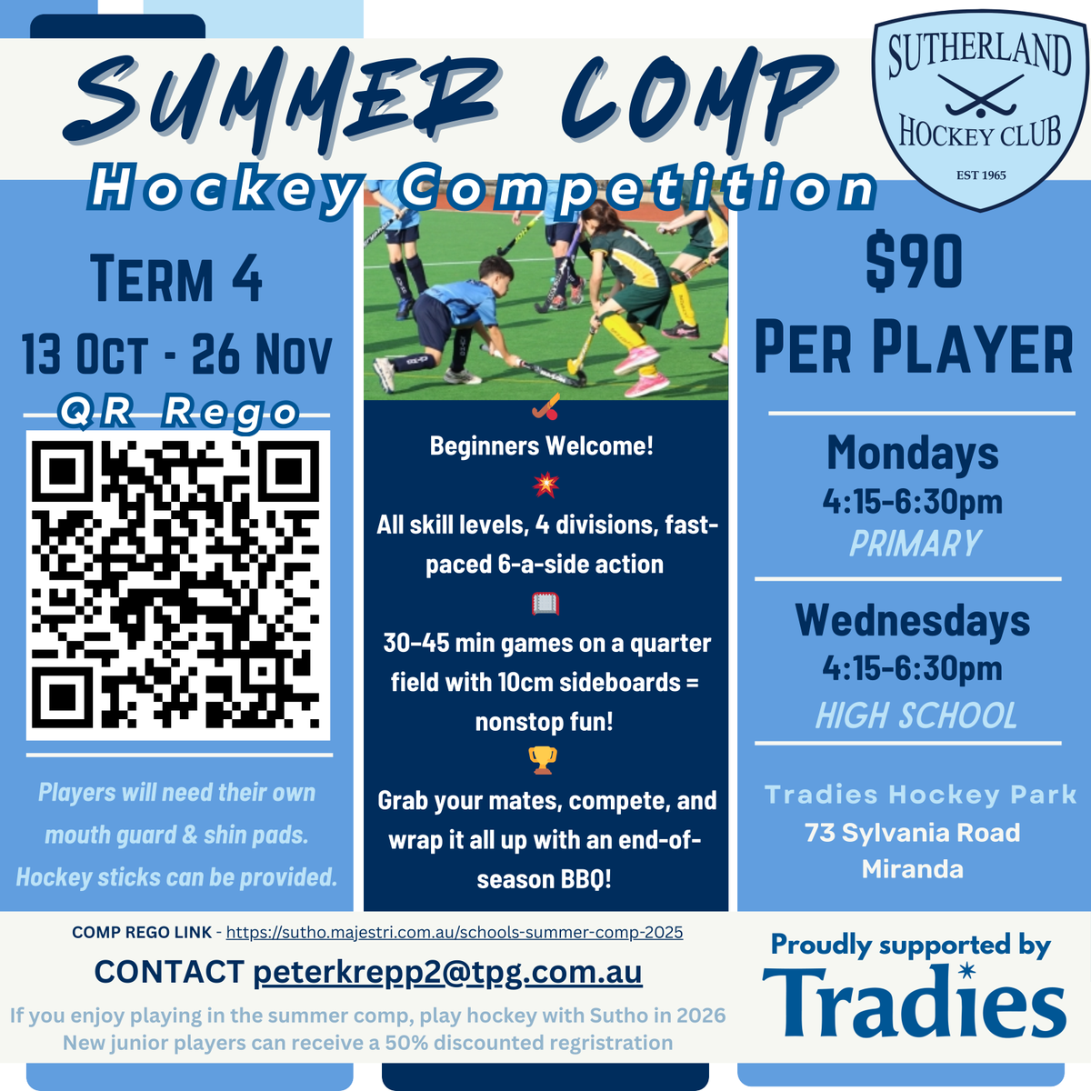 Our students were very successful at the recent Sutherland Hockey Gala Day and an event we hope to return to. Our teams gave it their all on the day and we were successful with our Senior Blue team making it to the final. This team placed 2nd overall! If any of our students were keen to continue playing as part of a regular competition, please find details in the below flyer.