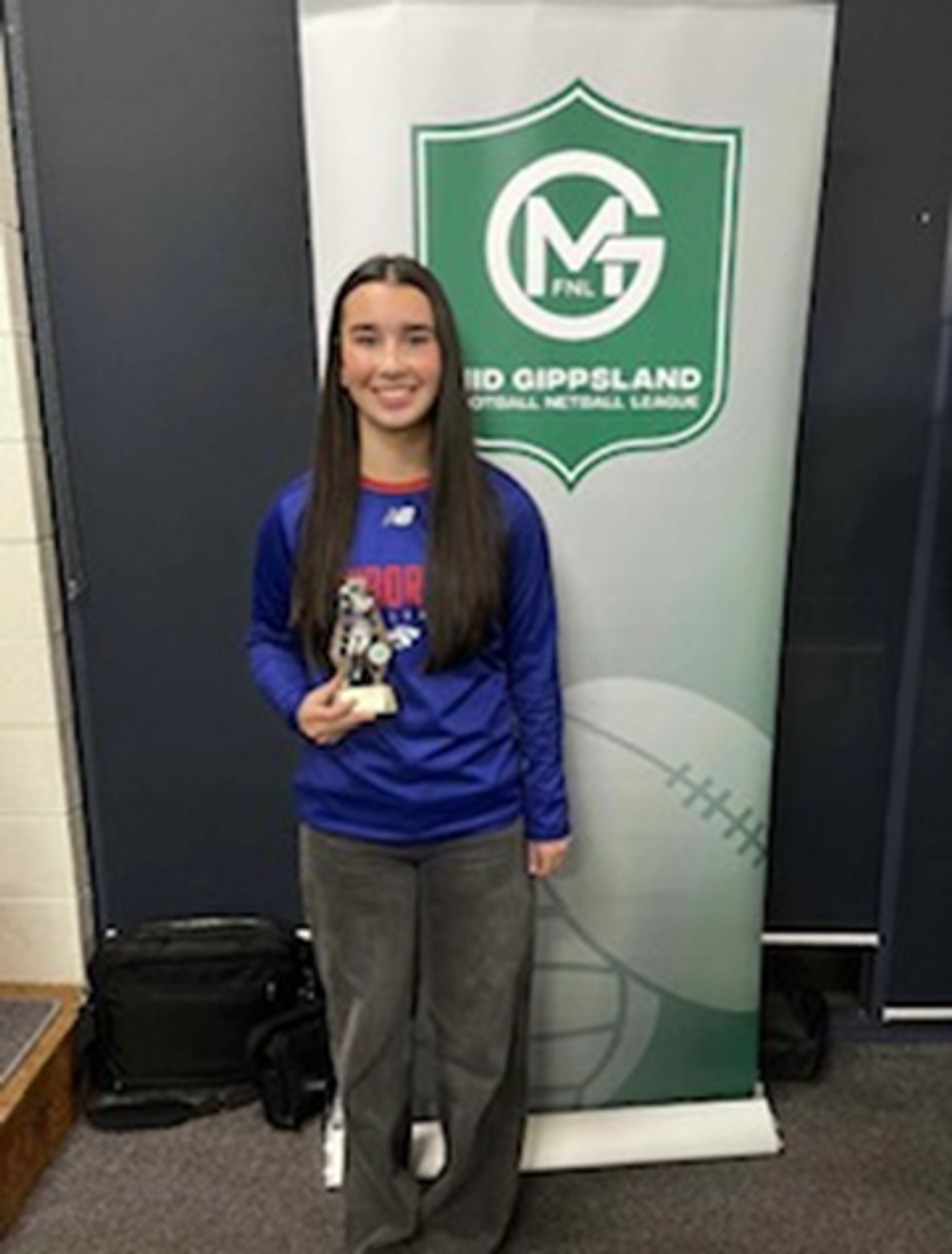 Congratulations to Year 7 student Ella Horton who was recently awarded League Leading Goal Shooter for Mid Gippsland U13s.