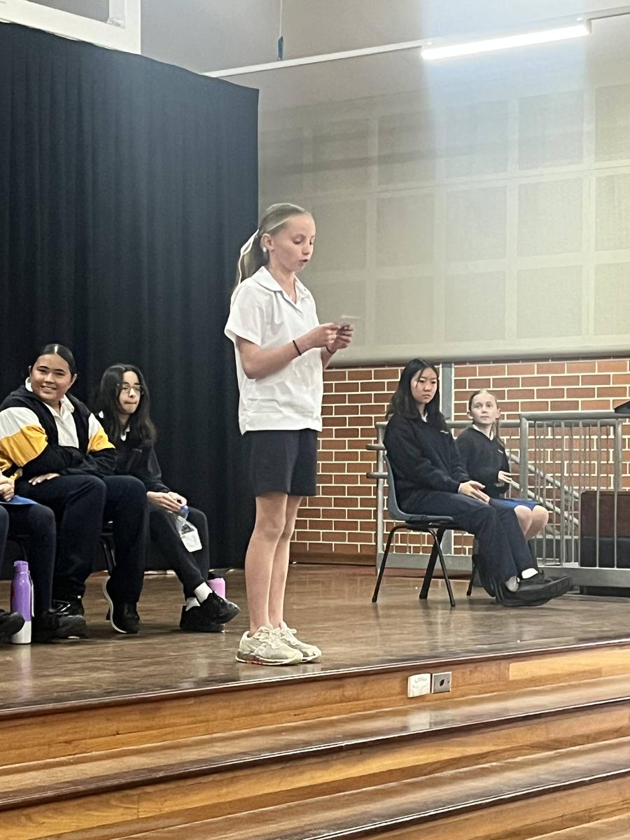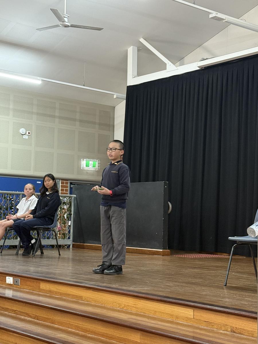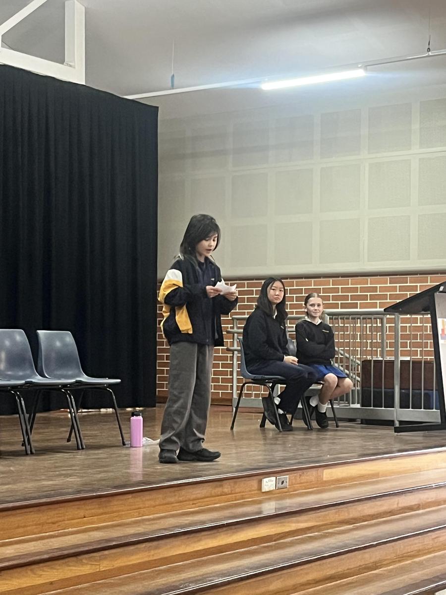 On Wednesday the 3rd of September, the Stage 2 representatives from each class took part in the competition. They were Alessia 3/4R, Emily 3/4R, Ilyas 3/4K, Alissa 3/4K, Harper 3/4S, Lucas 3/4S, George 3/4E, and Toby 3/4E. Once again, the adjudicators were presented with a highly challenging decision. The winner was Harper from 3/4S who presented a speech on ‘Choices’ and the highly commended student was Alessia from 3/4R who presented a speech on ‘Why Gen Alpha is the best generation’. Amazing work, Stage 2!