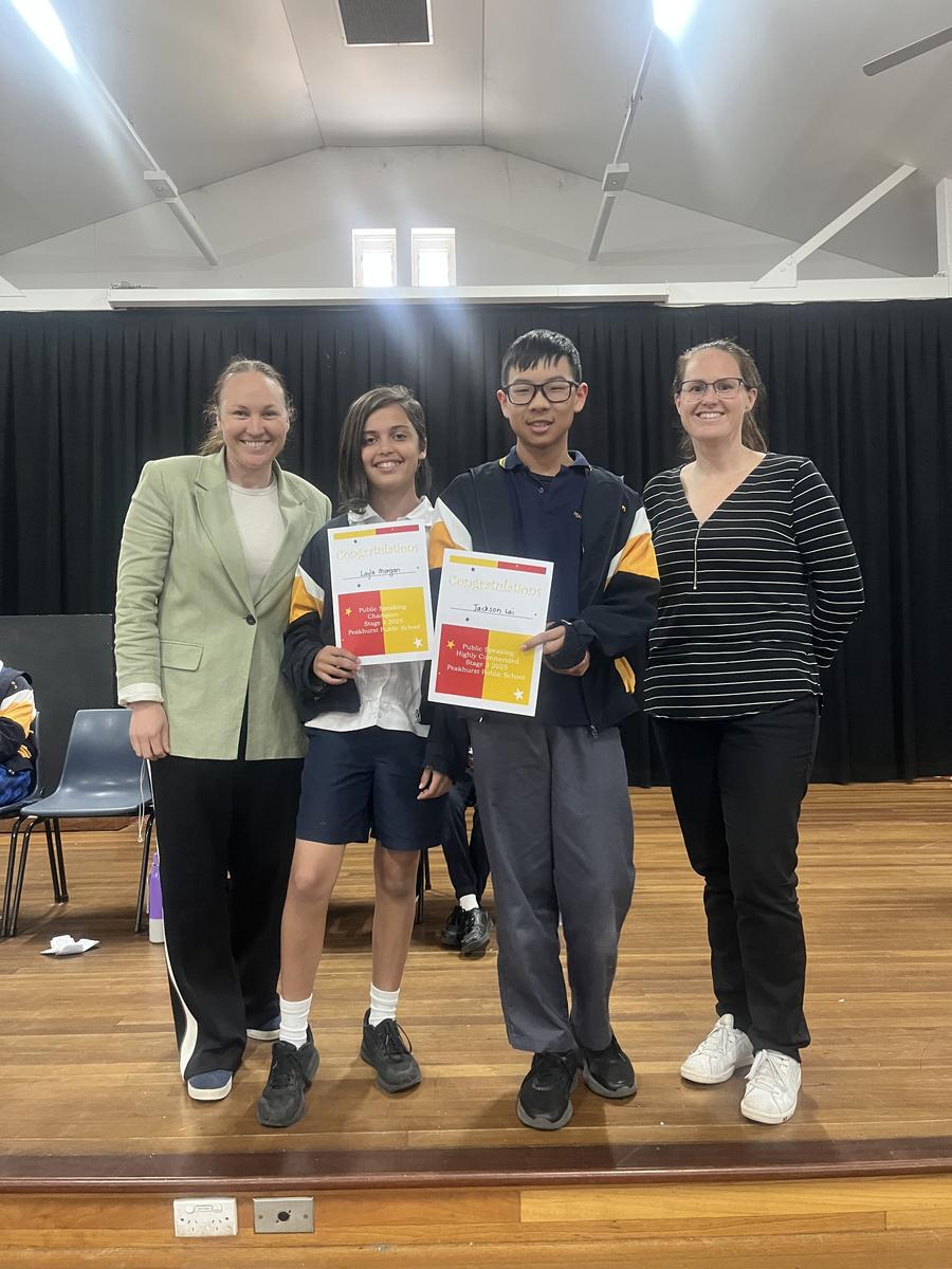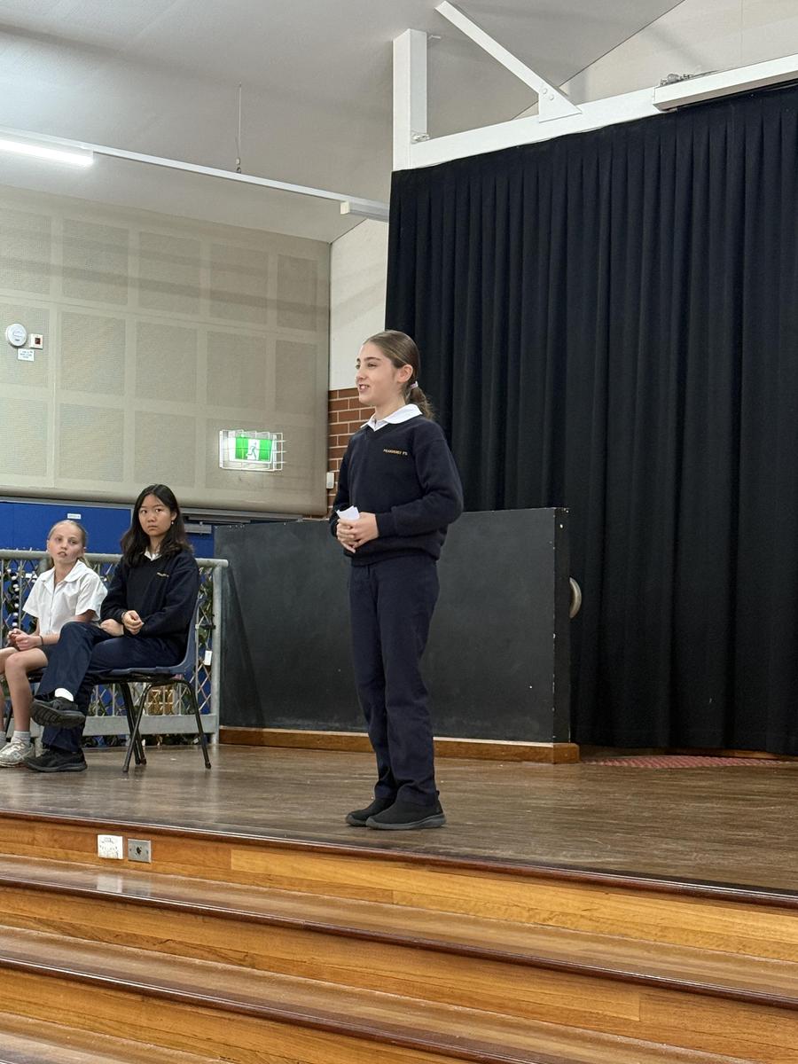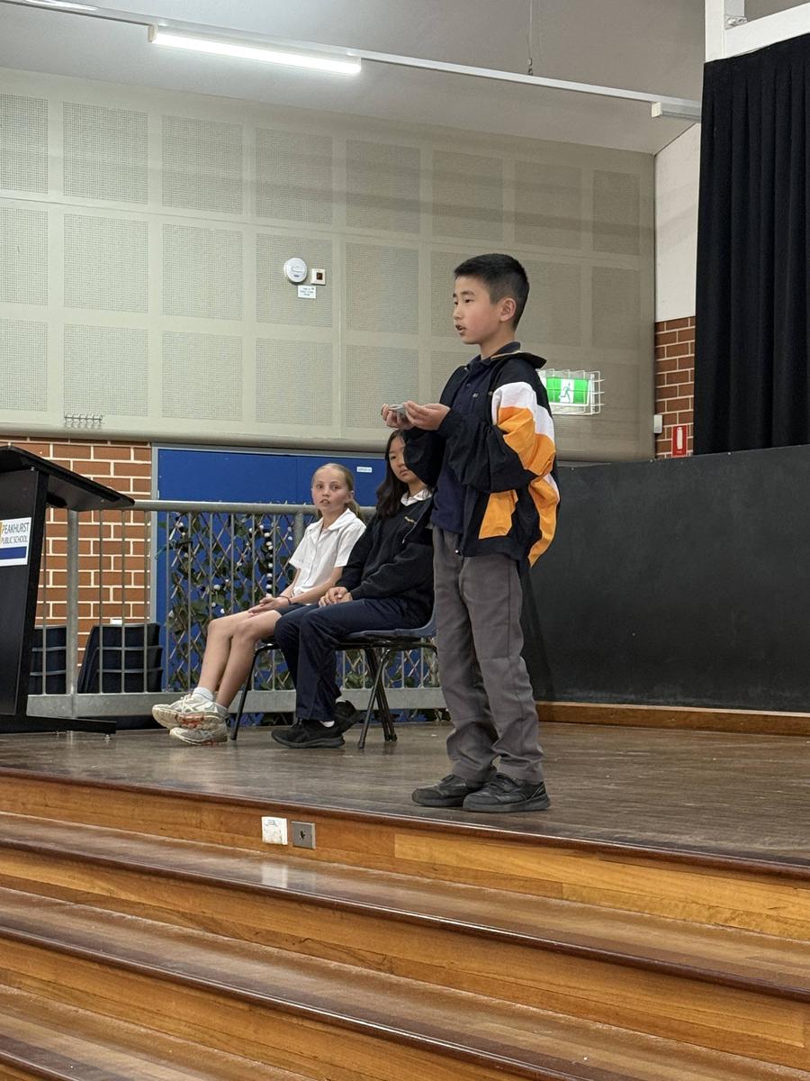 On Wednesday the 3rd of September, the Stage 2 representatives from each class took part in the competition. They were Alessia 3/4R, Emily 3/4R, Ilyas 3/4K, Alissa 3/4K, Harper 3/4S, Lucas 3/4S, George 3/4E, and Toby 3/4E. Once again, the adjudicators were presented with a highly challenging decision. The winner was Harper from 3/4S who presented a speech on ‘Choices’ and the highly commended student was Alessia from 3/4R who presented a speech on ‘Why Gen Alpha is the best generation’. Amazing work, Stage 2!