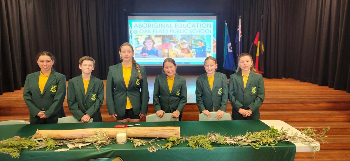 On Thursday, 26 October 2023 Oak Flats Public School hosted the Juborsay Aboriginal Education Consultative Group meeting. During this meeting, six of our Aboriginal Student Leadership Group student representatives presented a showcase of Aboriginal Education at our school. These leaders did an outstanding job of speaking to a room filled with over 80 school educators, Principals, and Directors! It was truly inspirational to see each of them speak with confidence and pride (and a joke or two thrown in!). Congratulations to Alirah C, Aliah G, Elaine S, Eli S, Hunter S and Sienna F and a special thank you to Miss Hamilton who worked with our students in the lead up to the event.