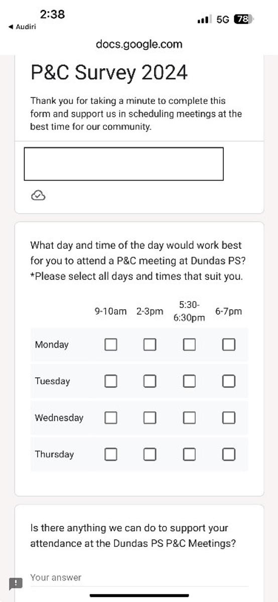The DPS P&C are interested in attracting more parents and carers to our P&C meetings and would like some feedback as to the most convenient time P&C meetings should be held. The DPS P&C are wanting to hear from you. It would be most appreciated if our parent community could complete the very short survey. The link is below. It will take you 30 seconds to complete.
