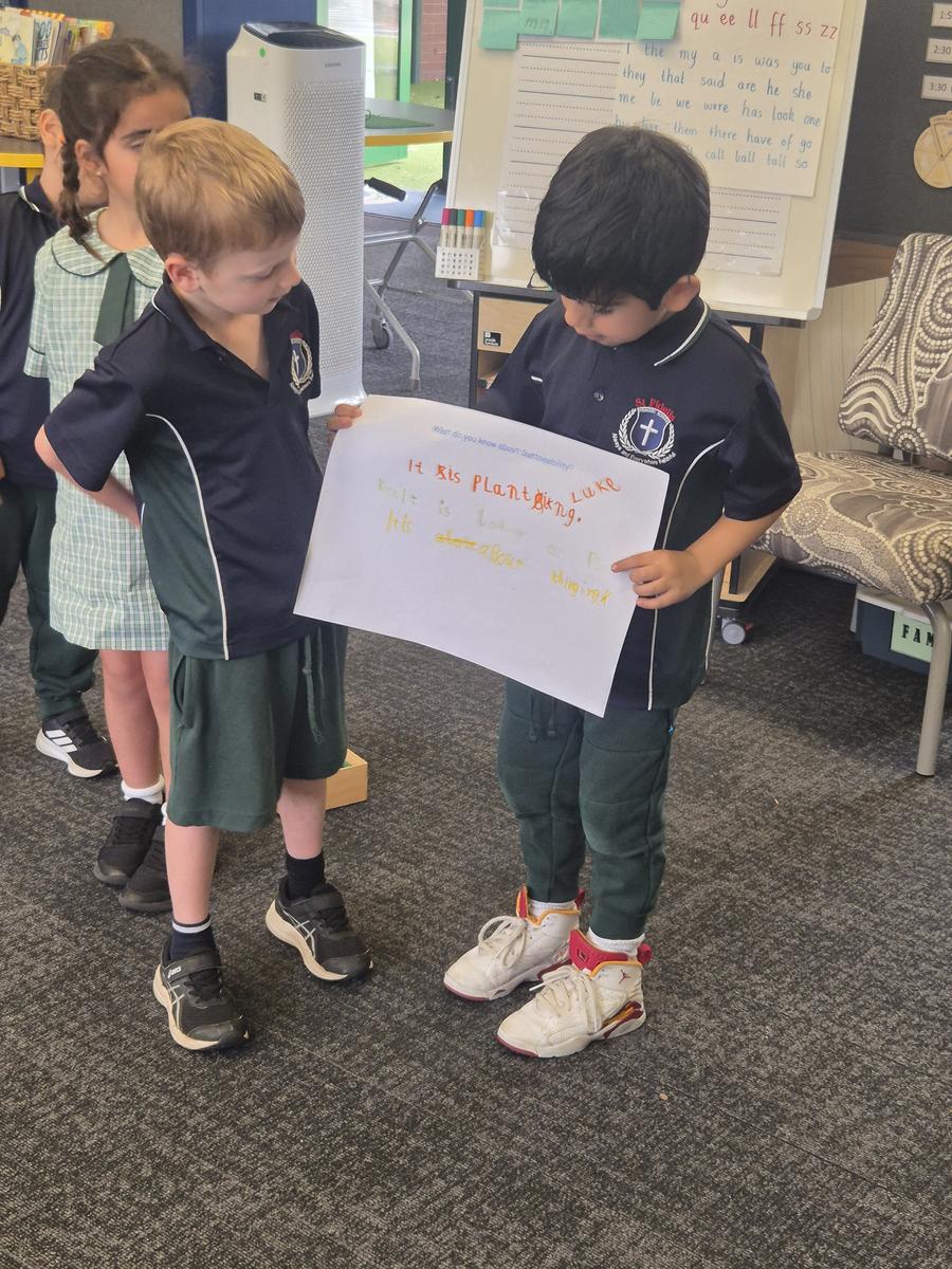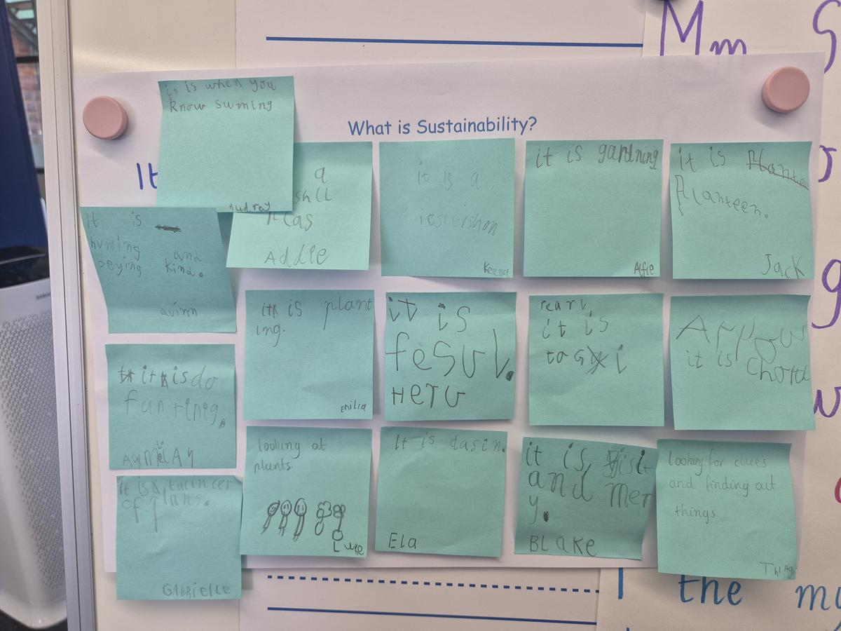 This term, we are very lucky to be engaging in Sustainability lessons with Mrs Gasbarro. During these sessions, we are learning all about sustainability and how we can care for and look after our school environment. To begin,we participated in a chalk talk to share our ideas about what sustainability means and what we think we might explore during our lessons. Our ideas were impressive-many of us mentioned gardening, planting, recycling, and helping nature to grow!