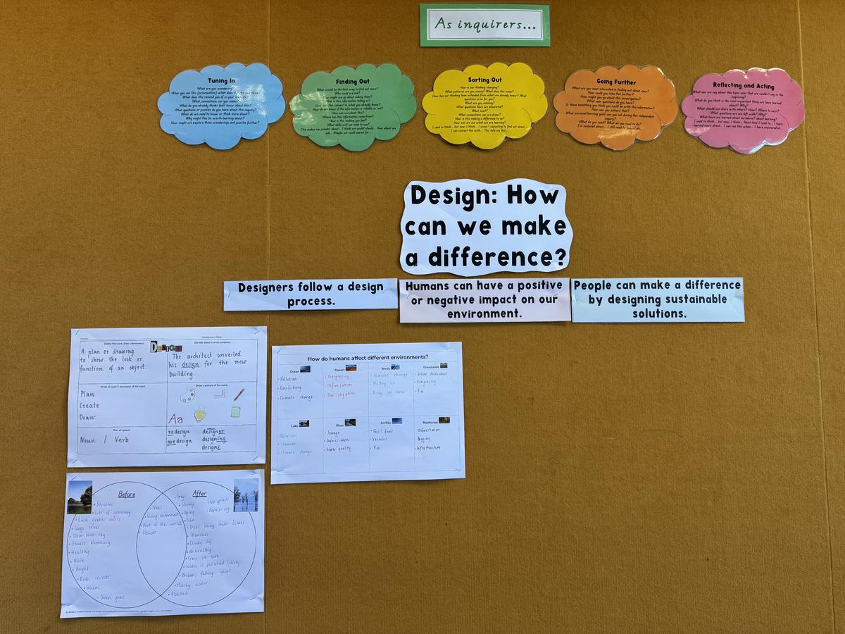 As inquirers, we have been exploring our big question for this term “Design: How can we make a difference?’ We have been tuning into this topic by discussing the impacts that humans have had on different environments. Finding out more about sustainability, we have been introduced to different terms like ‘ecosystems’, ‘habitat loss’, ‘greenhouse gasses’, ‘fossil fuels’, ‘renewable resources’, ‘carbon footprint’, ‘pollution’ and ‘climate change’.
