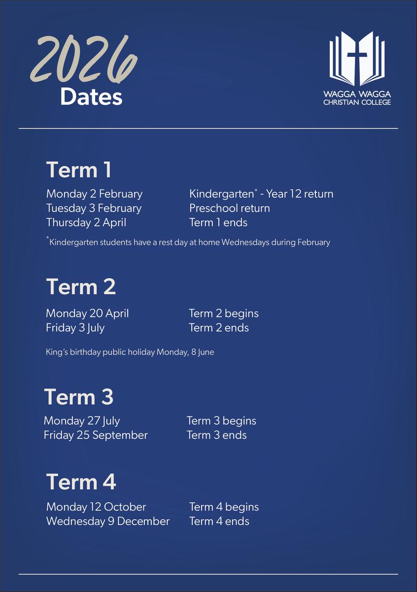 We’re pleased to share the official term dates for the 2026 school year. Please mark your calendars now and plan ahead!