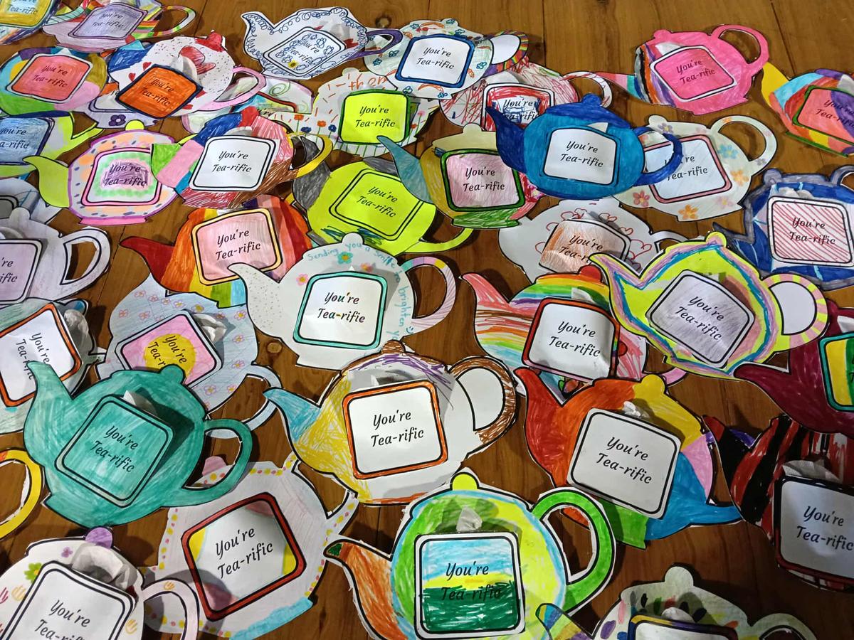 They creatively crafted small tea pots accompanied with pouches designed to hold tea bags. A personal touch was added to these gifts, as students wrote heartfelt notes on the back of the teapots.