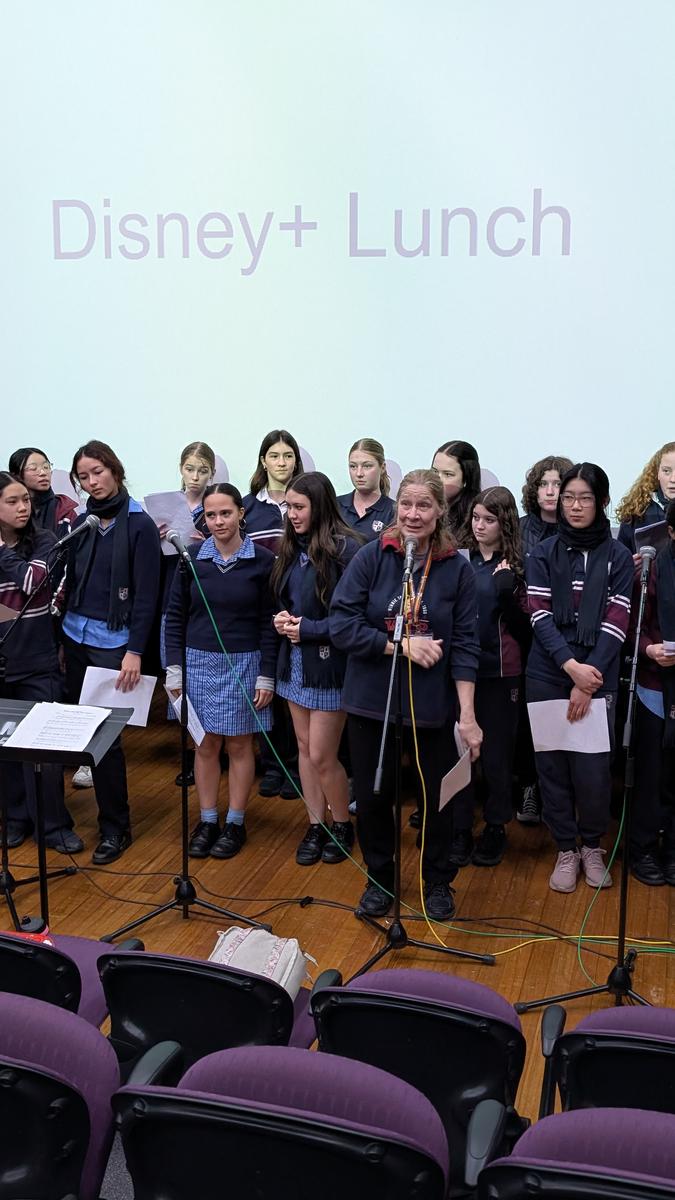 The informal vocal students' lunchtime recital is now a 'Disney Plus much more' event. The venue has grown from a Music Room to the Lecture Theatre and the program has expanded to include songs from musicals.