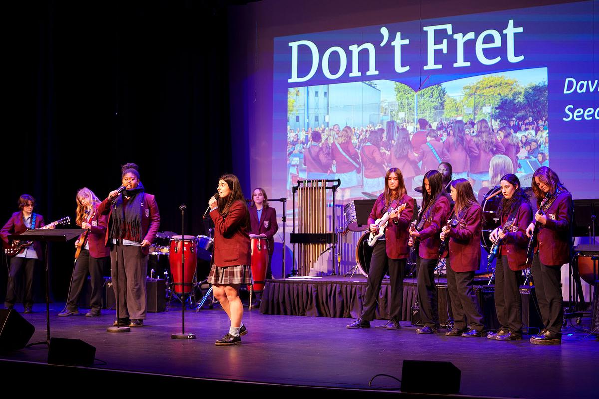 Kingston Arts Centre is a new venue for us but it did allow some students the opportunity to see part of the concert. It is so important for our younger students to hear the more experienced ensembles. It was inspiring to see everyone supporting one another and engaging the audience with energy and enthusiasm. I hope the evening left everyone with lasting memories of these vibrant performances and the joy of seeing over 300 performers coming together for the Finale. Thank you to all the Music staff for helping us to make this event, the last for our Year 12s, so special.