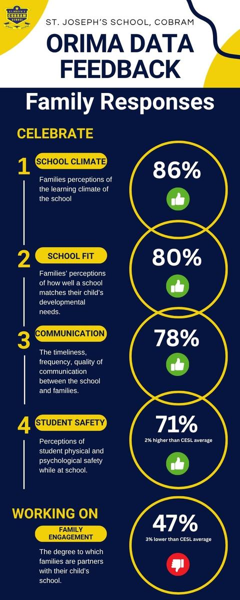 ORIMA RESULTS: Thank you to the 71 parents who completed the survey. Our results are very pleasing, and we have a goal set to work on.