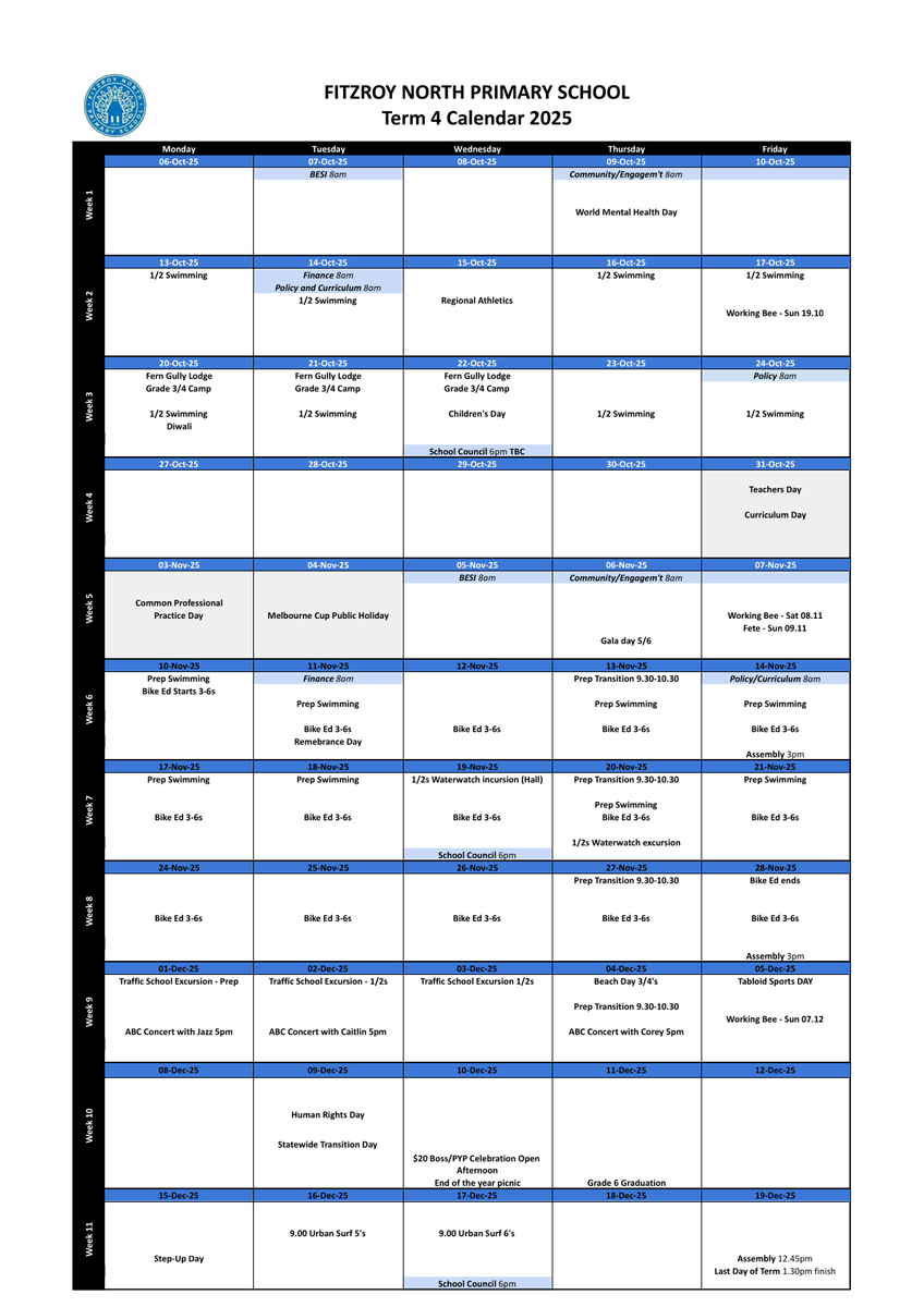 FNPS Term 4 Community Calendar