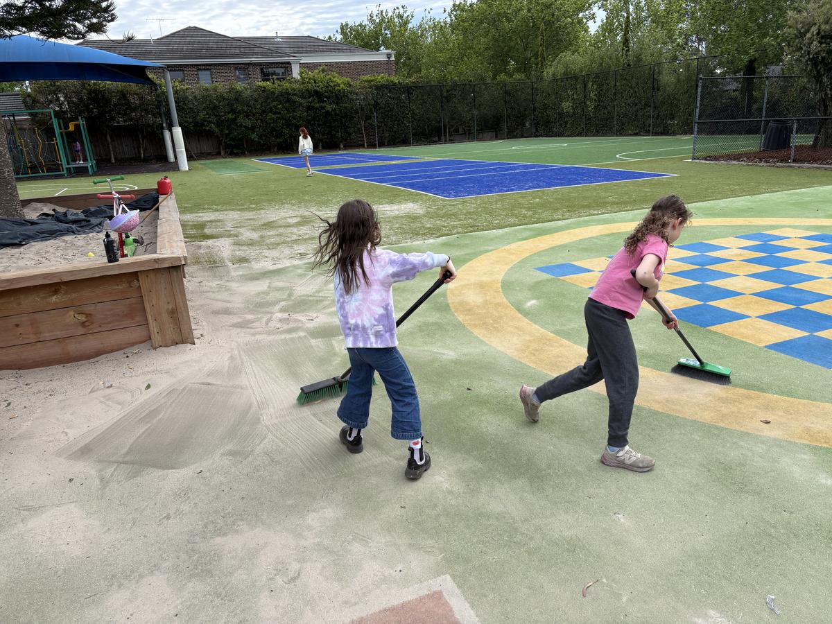 Considering the weather we have had the past few days, we were very fortunate to have fine - albeit windy - weather for our Working Bee last Sunday. It was great to have so many parents and children 'roll up their sleeves' and help out on the day.