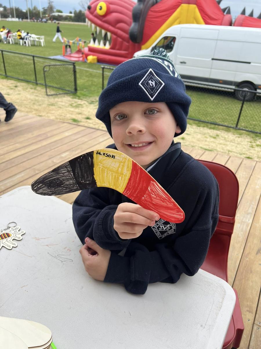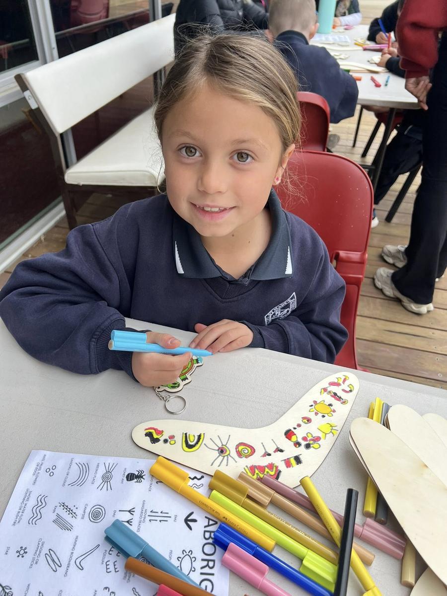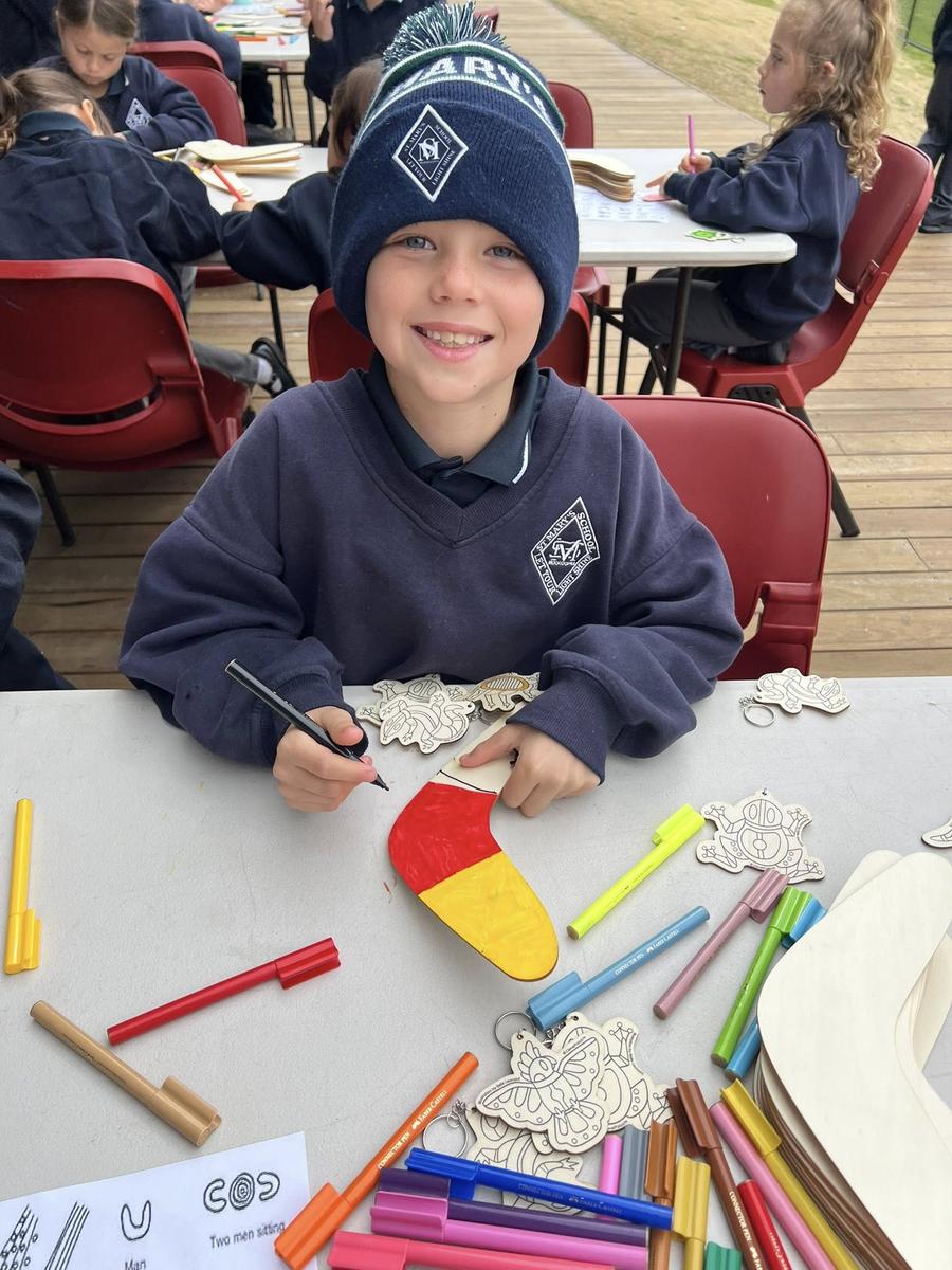 Such a successful Day 2 at ASHEfest last Term. The Yr 4-6 students enjoyed learning 2 new games - Prun and Jumpinpin. They looked a various artefacts such as emu callers and possum skin cloaks. They decorated boomerangs and keyrings. Finally they had their faces painted and jumped in the Croc Jumping castle. It was a fabulous day.
