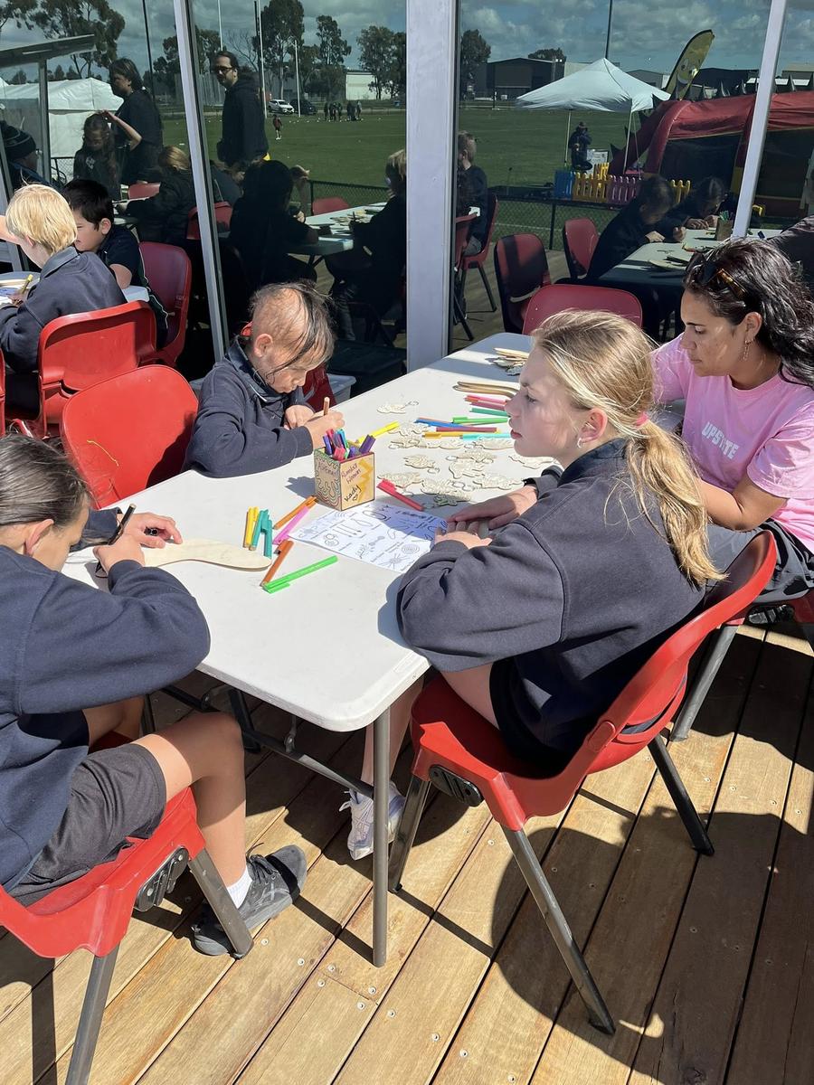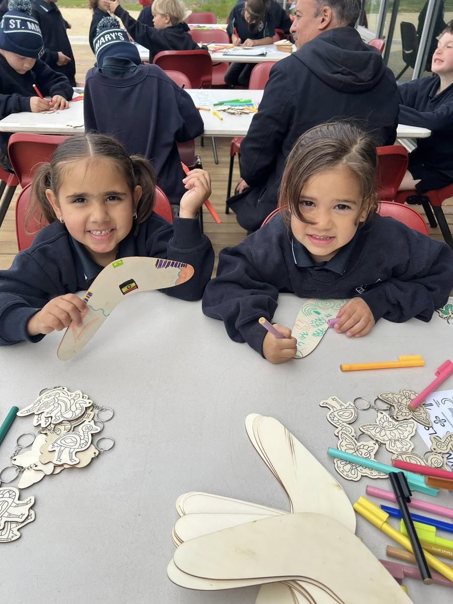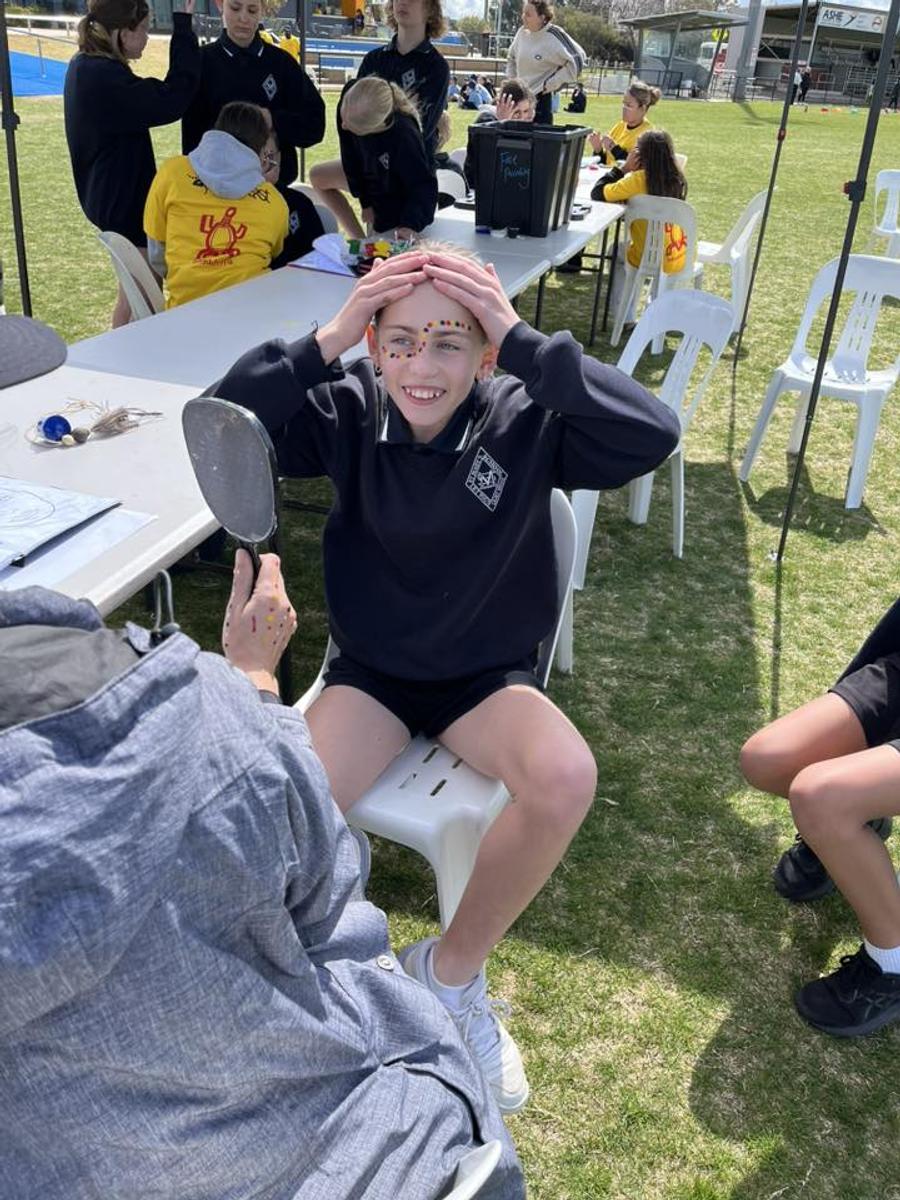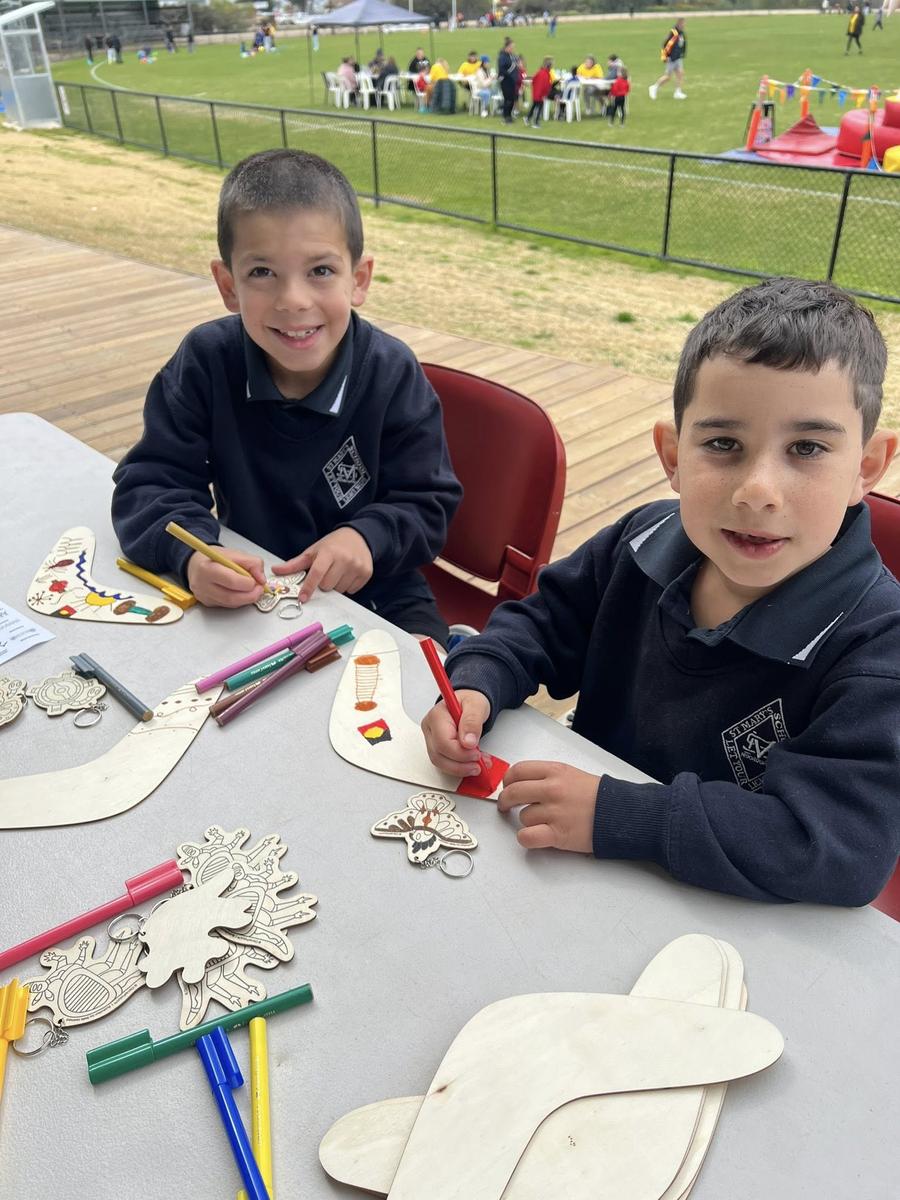 Such a successful Day 2 at ASHEfest last Term. The Yr 4-6 students enjoyed learning 2 new games - Prun and Jumpinpin. They looked a various artefacts such as emu callers and possum skin cloaks. They decorated boomerangs and keyrings. Finally they had their faces painted and jumped in the Croc Jumping castle. It was a fabulous day.