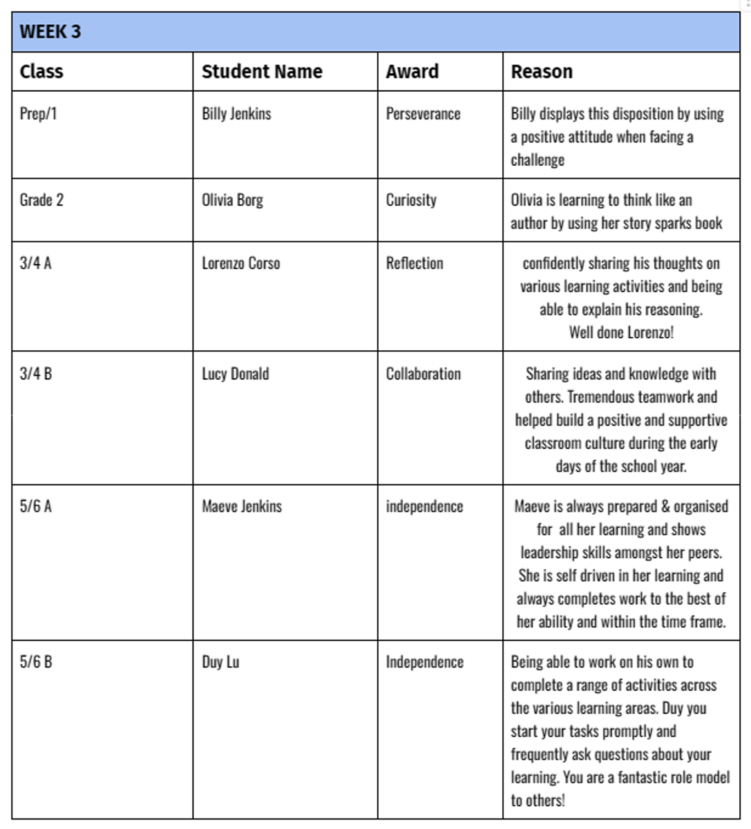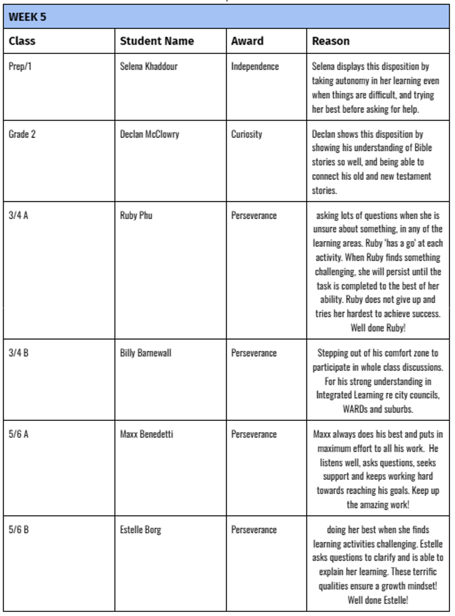 STUDENT AWARDS term 1