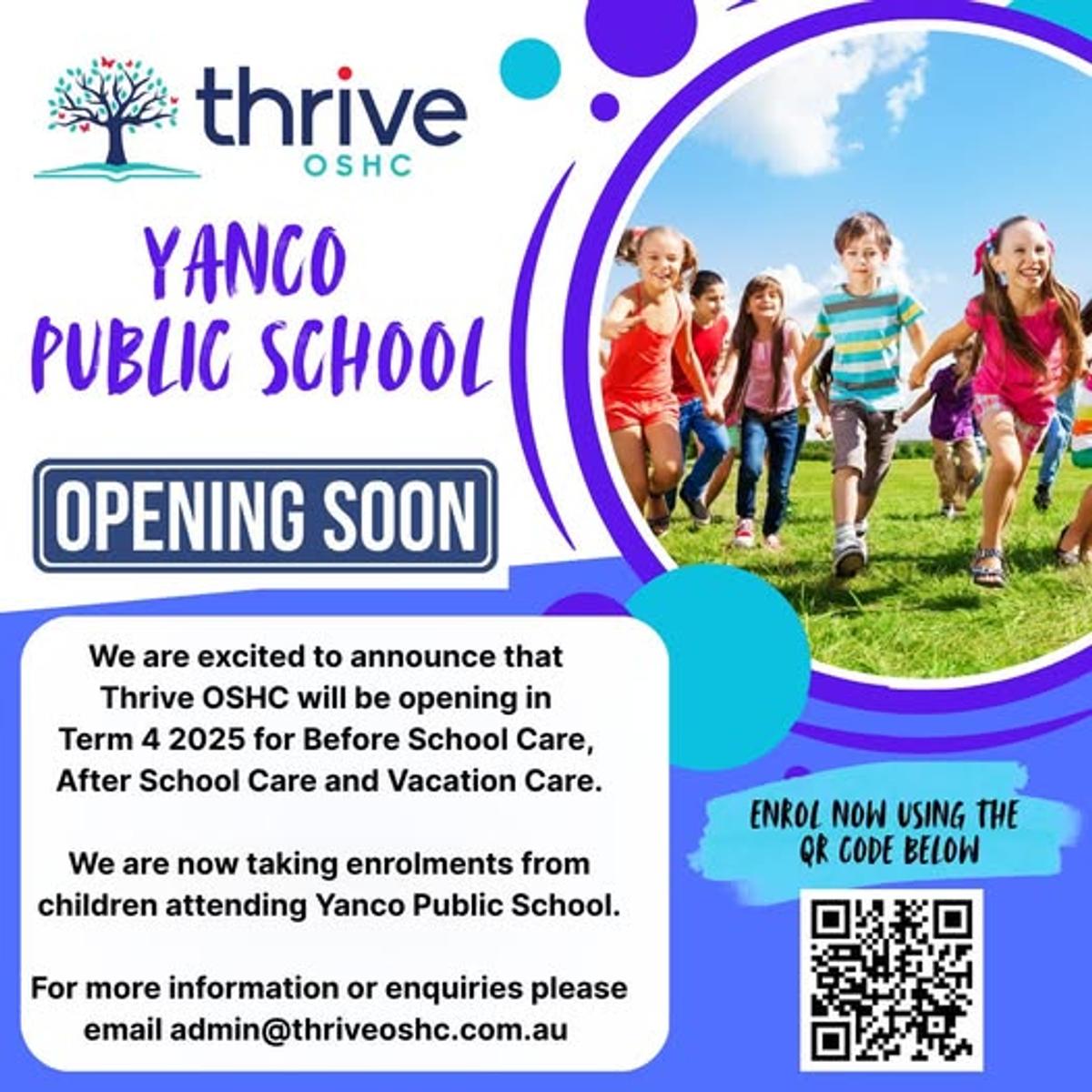 We are pleased to announce that a new Out of School Hours (OOSH) Care service run by Thrive, will be opening on our school grounds from Term 4. This service will provide quality before and after school care, giving families greater flexibility and peace of mind knowing their children are in a safe, engaging, and supportive environment.