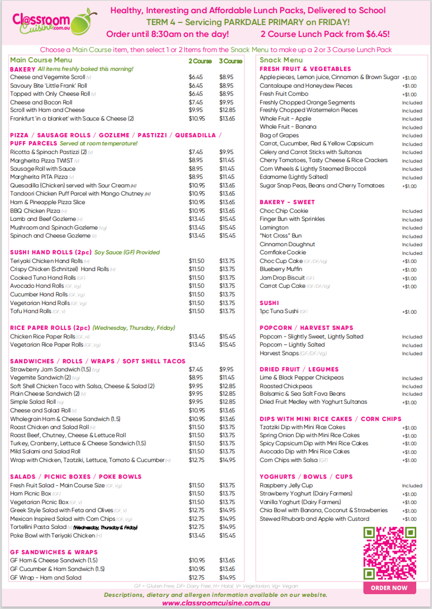 Classroom Cuisine Term 4 - Advance Ordering - Loyalty Reward Voucher - Available until 13th October, 2025.