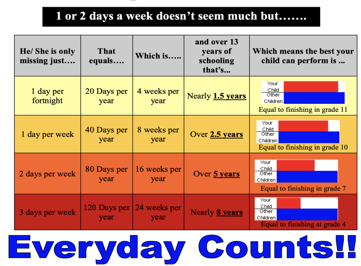 Can parents and students please take note of the graphic below. We had too many of our students missing over 10 days of school (some students even more days - half or full days) in Term 3 this year.