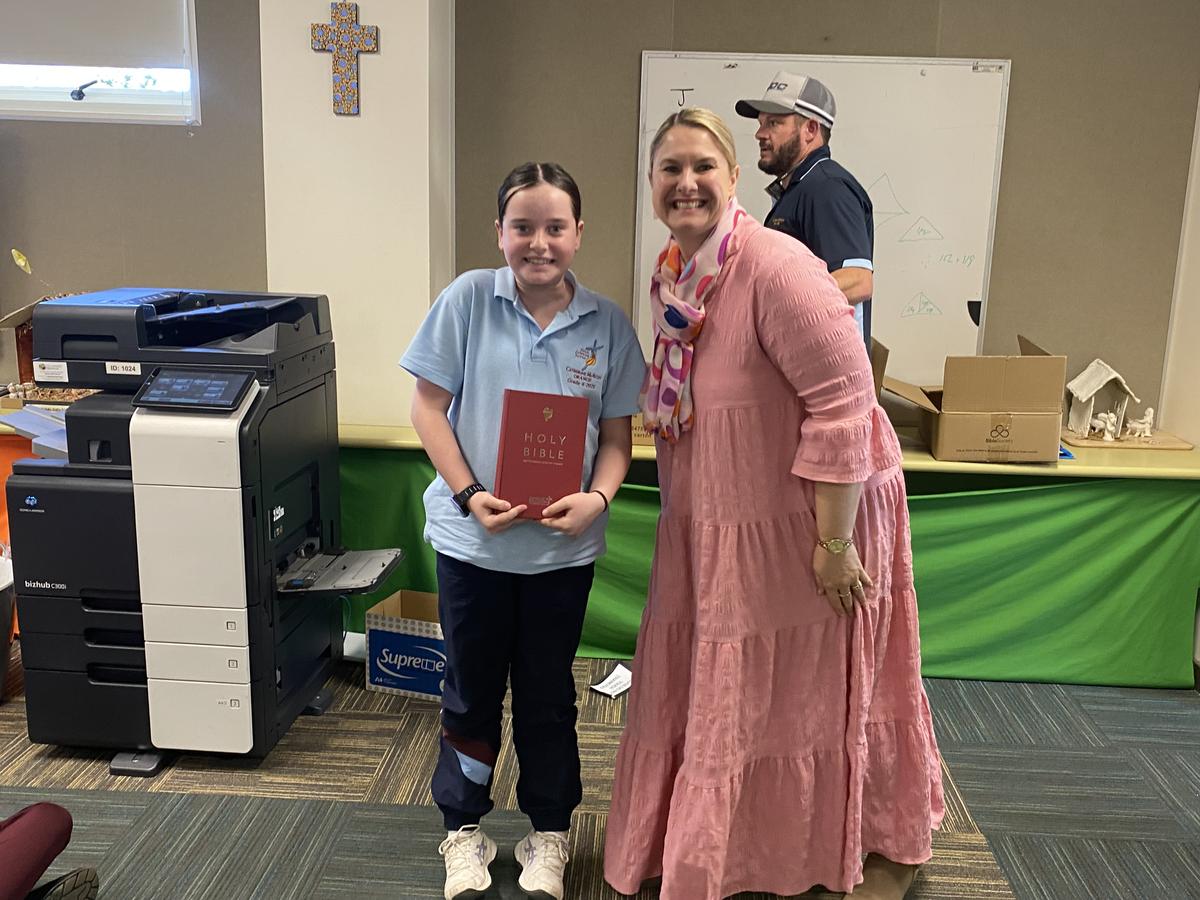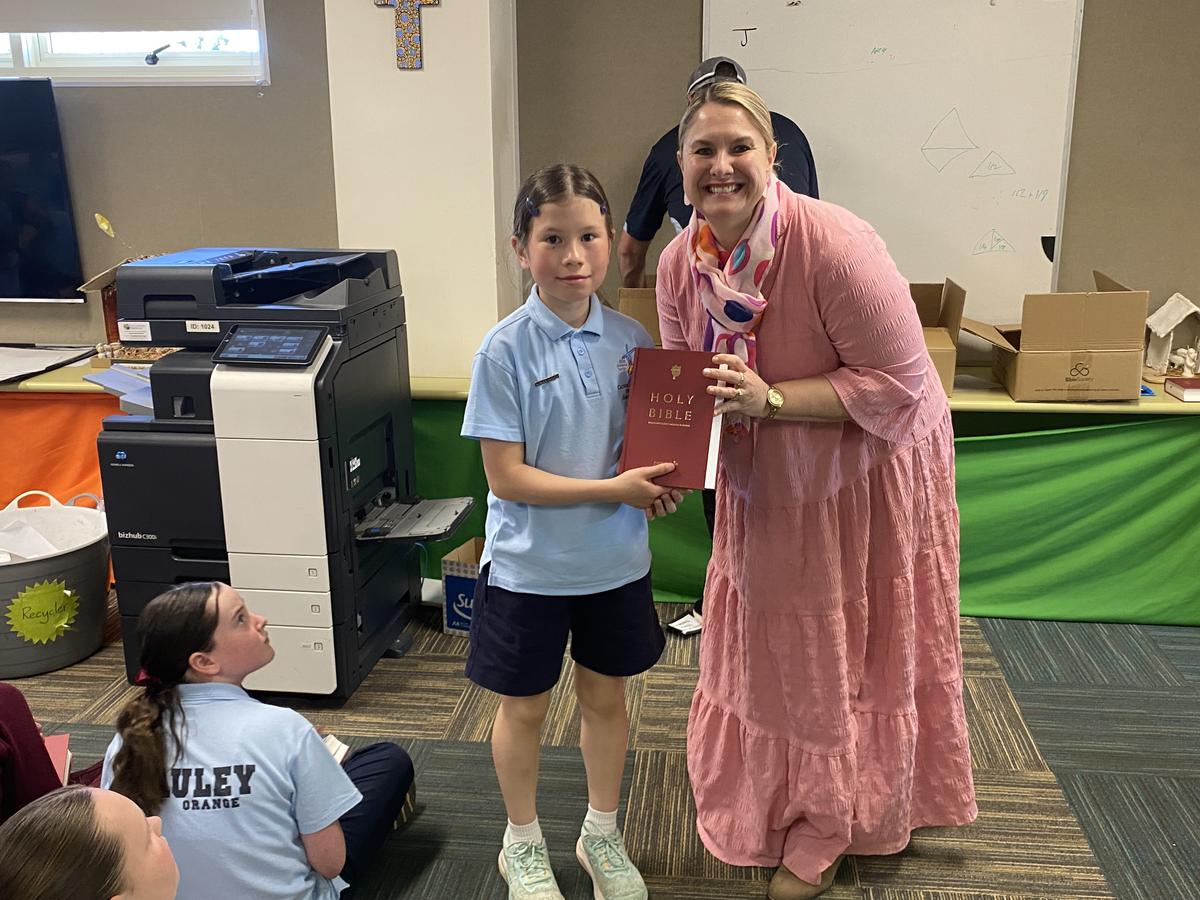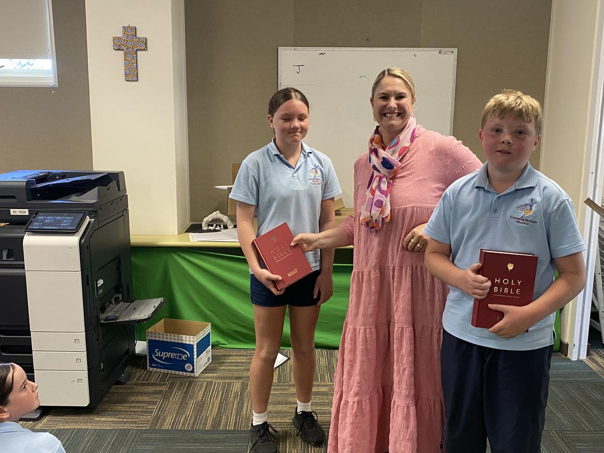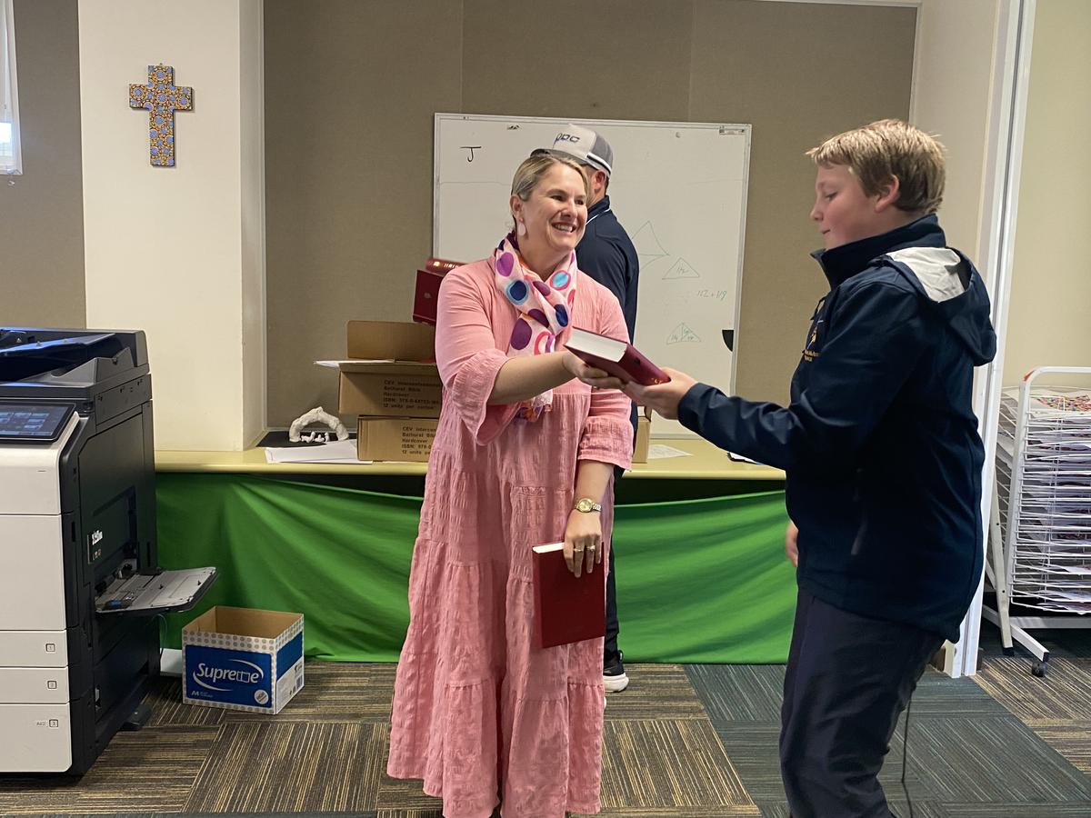Congratulations to the 39 students in Year 6 who were Confirmed during Mass over the last few weeks. As a sign of their committment to their faith, Bishop Michael sent them all a very special Bible to commemorate this special Sacrament. I was honoured to present these Bibles to them.