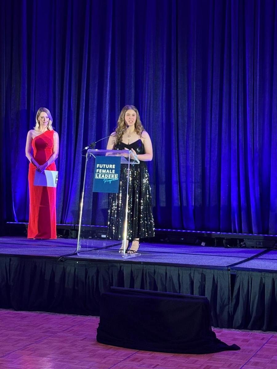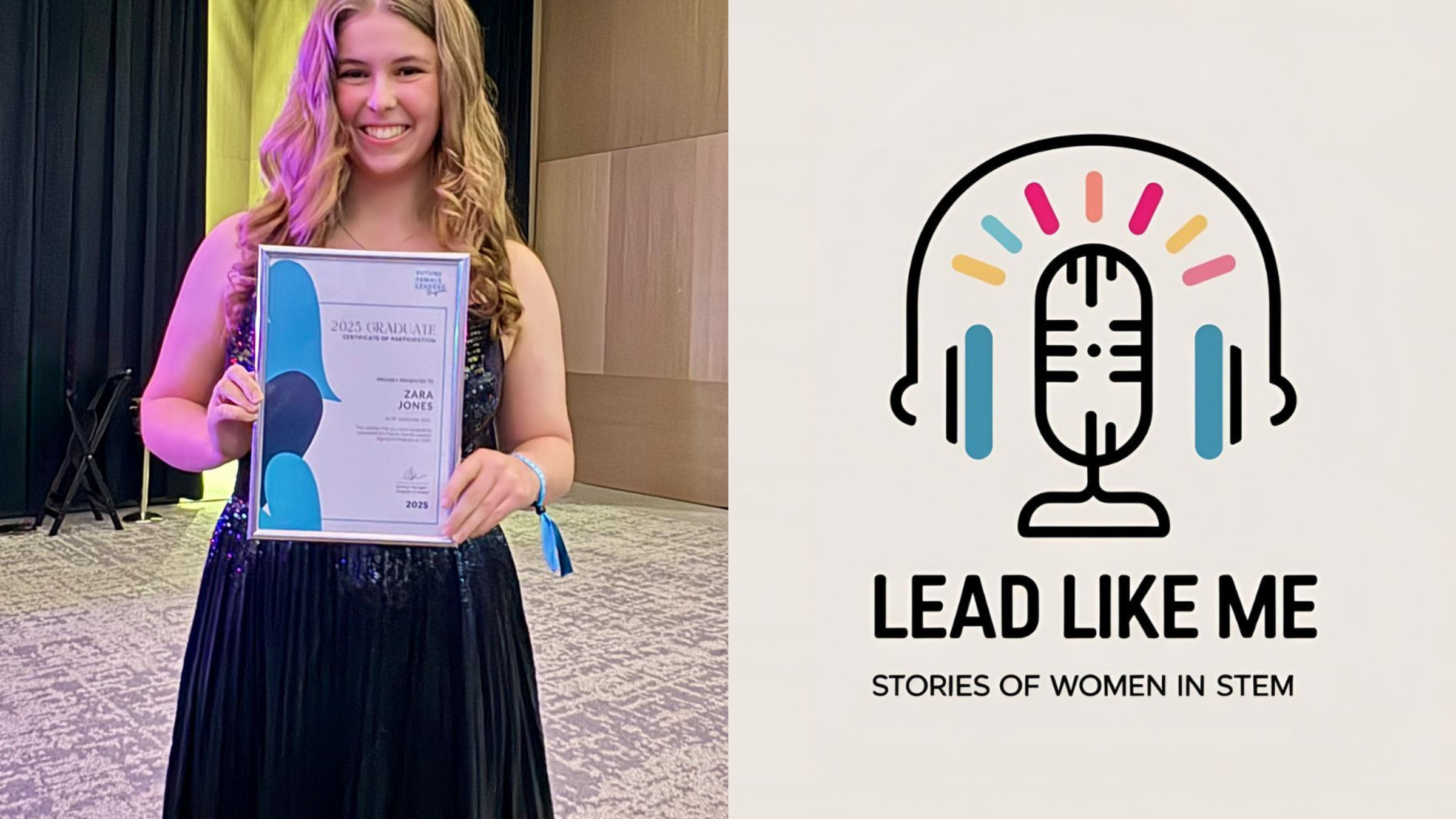Year 11 student Zara Jones exemplifies this mission. As the sole girl in her Computer Science class, she has channelled her Future Female Leaders Program experience into passion and advocacy for women in STEM. Zara now hosts Lead Like Me, a storytelling podcast spotlighting female engineers and technologists who challenge norms and inspire the next generation. Through candid conversations and real-world insights, her episodes celebrate diverse journeys, break down barriers and invite listeners to envision themselves in STEM roles. These pictures show Zara being recognised at a gala dinner last week for her Future Female Leaders program achievements.